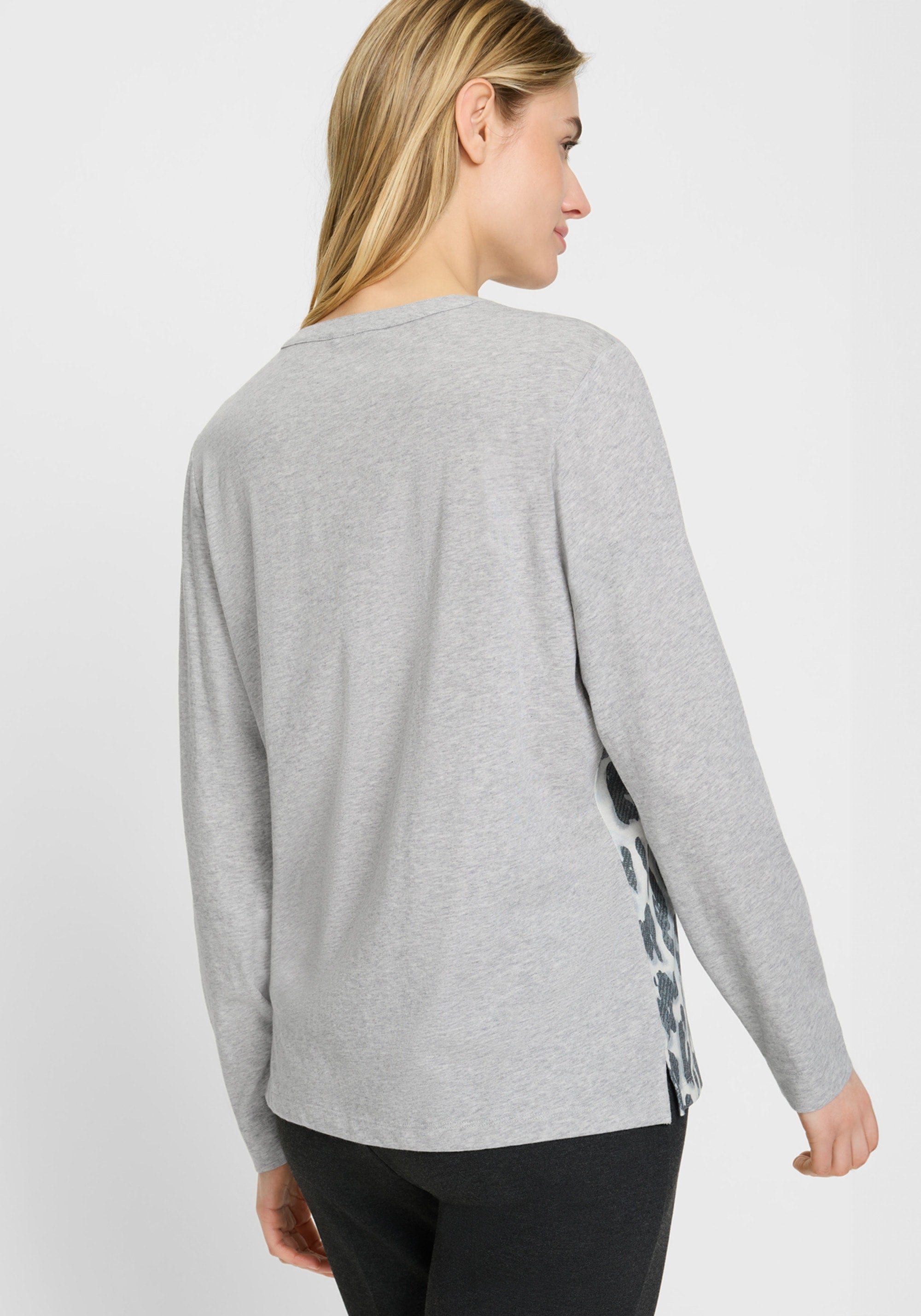 This cotton blend t-shirt is lightweight and airy, featuring a striking mixed motif design on the front that makes a bold statement.