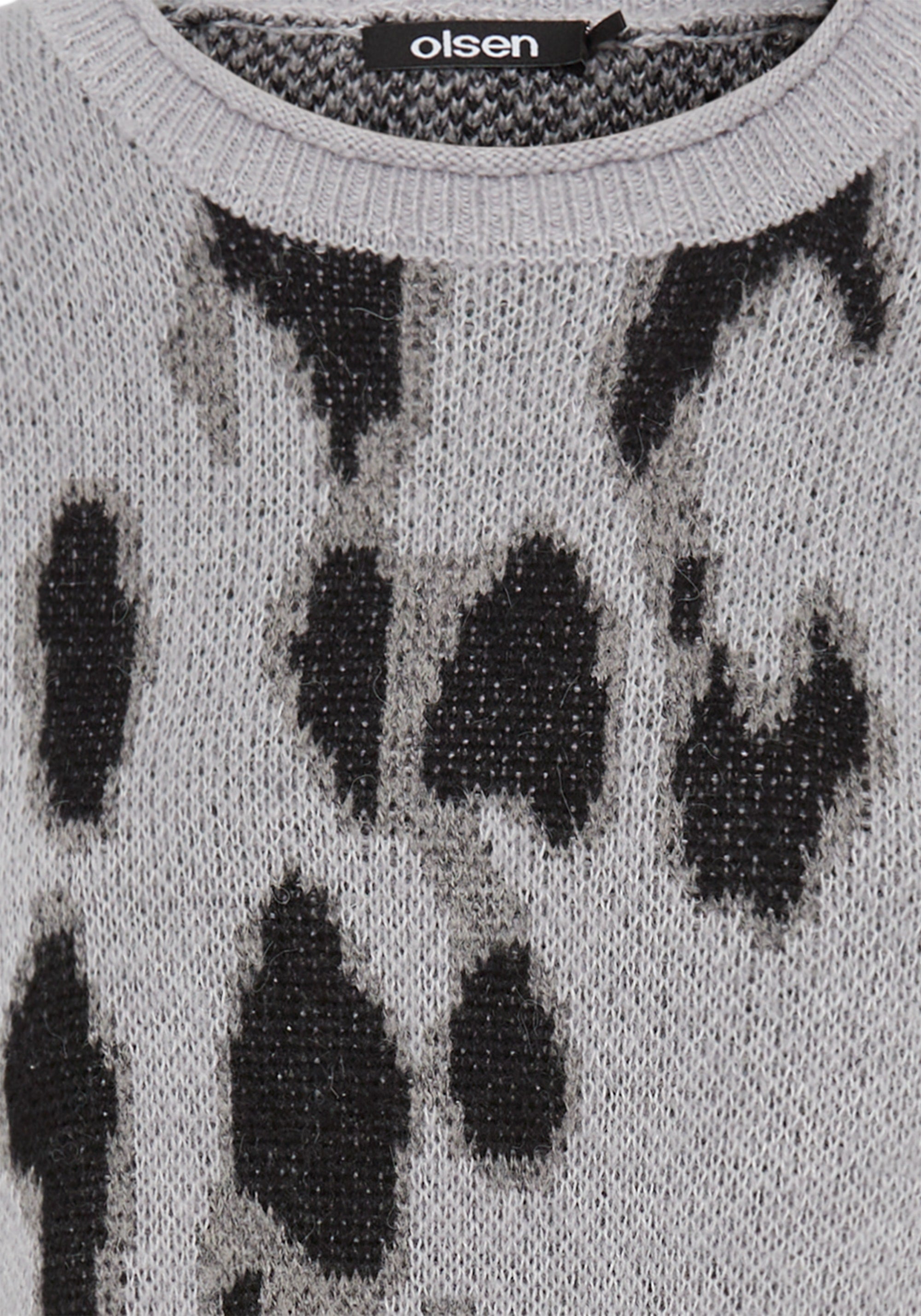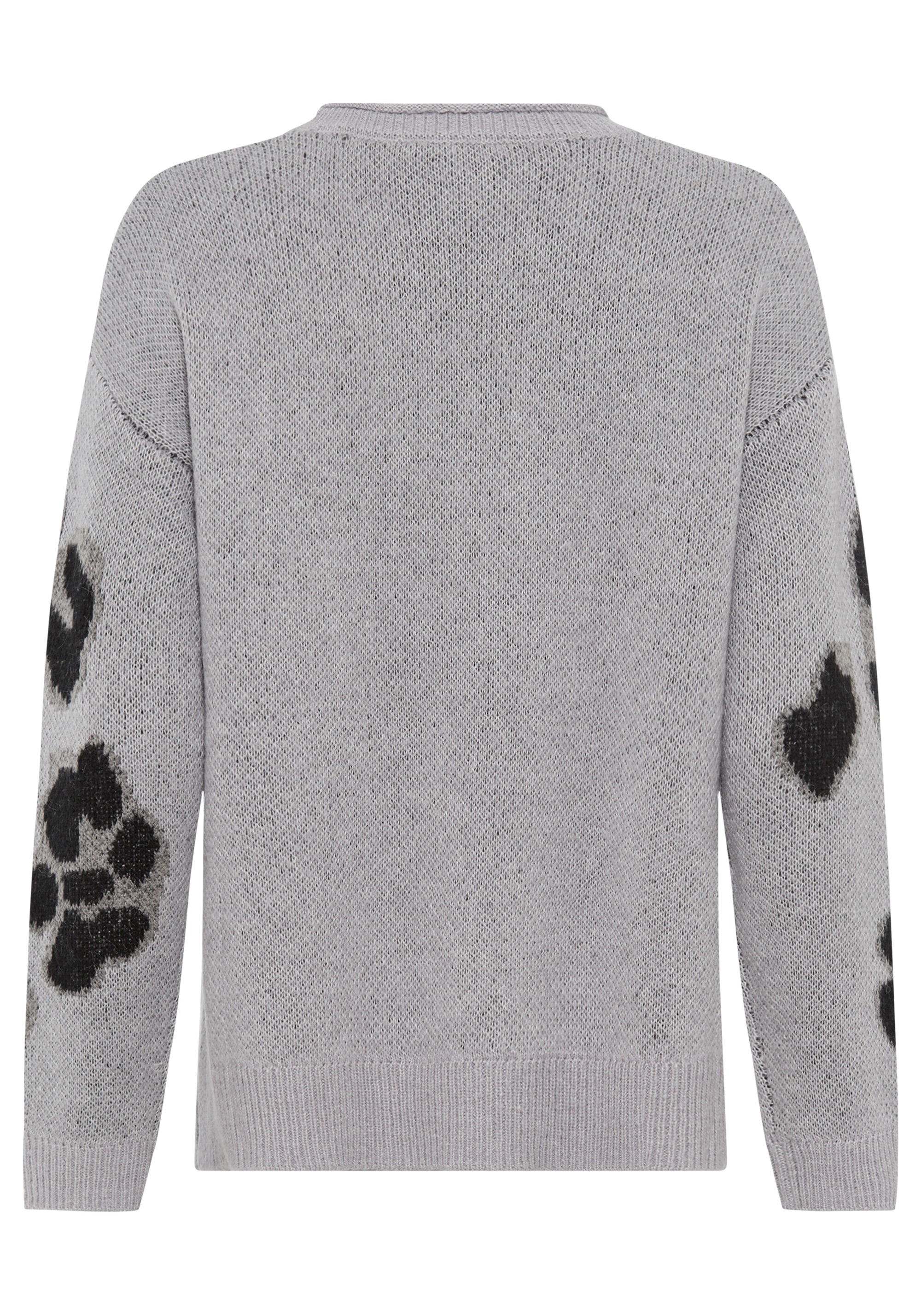Cozy yarns combine with a modern abstract leopard pattern to create a striking statement sweater.