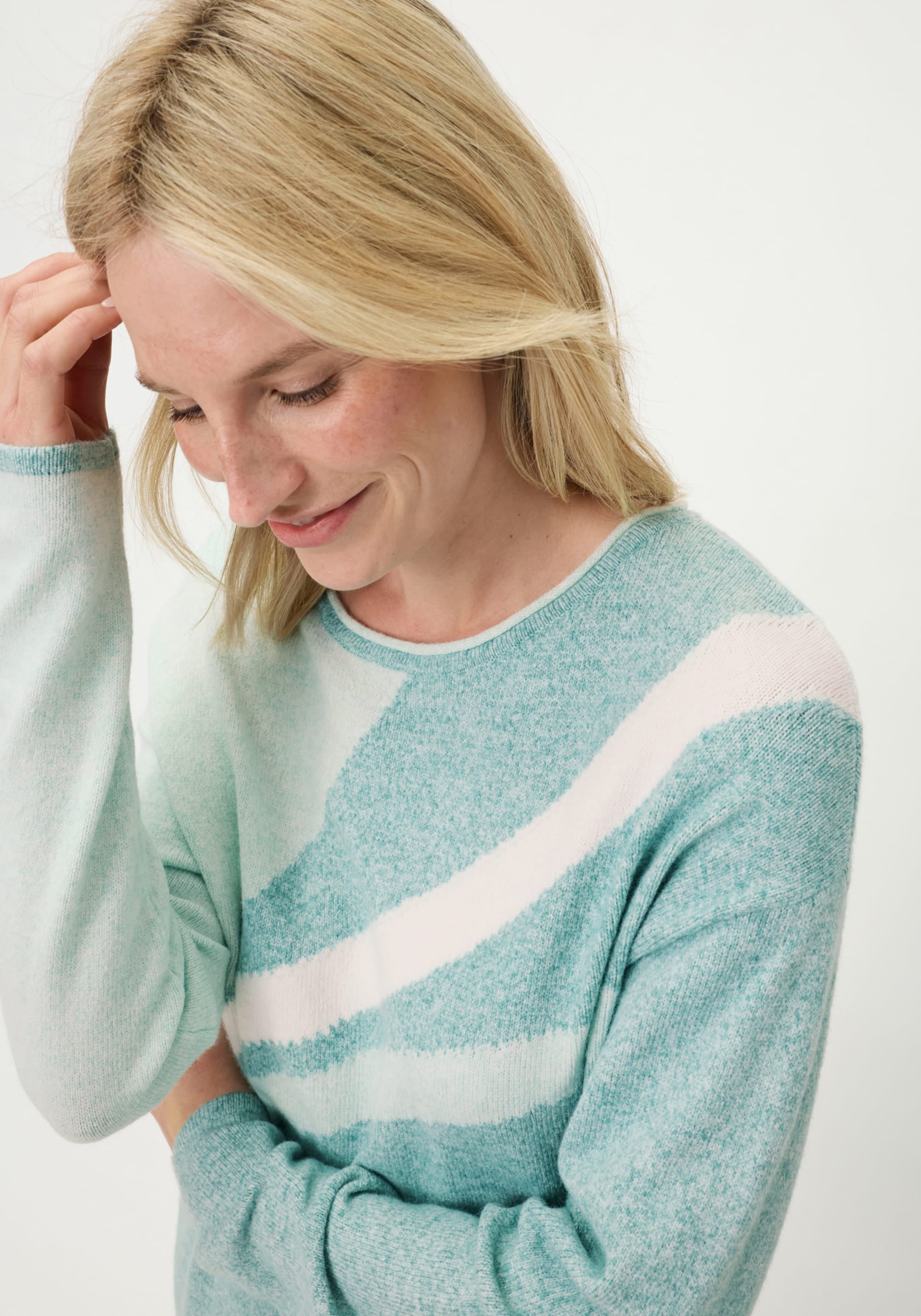 This modern sweater stands out with its expressive panel design, making it a true style statement.