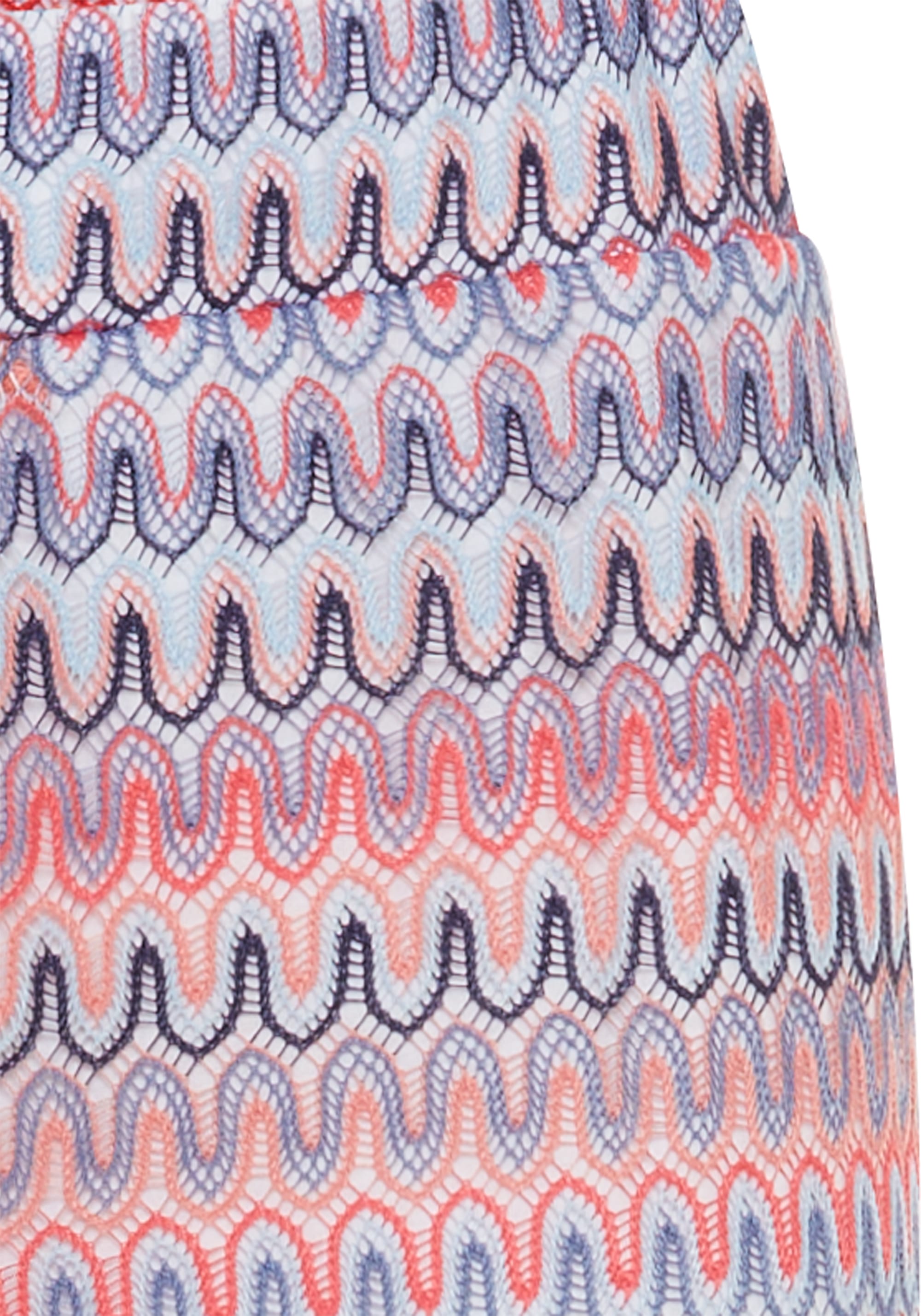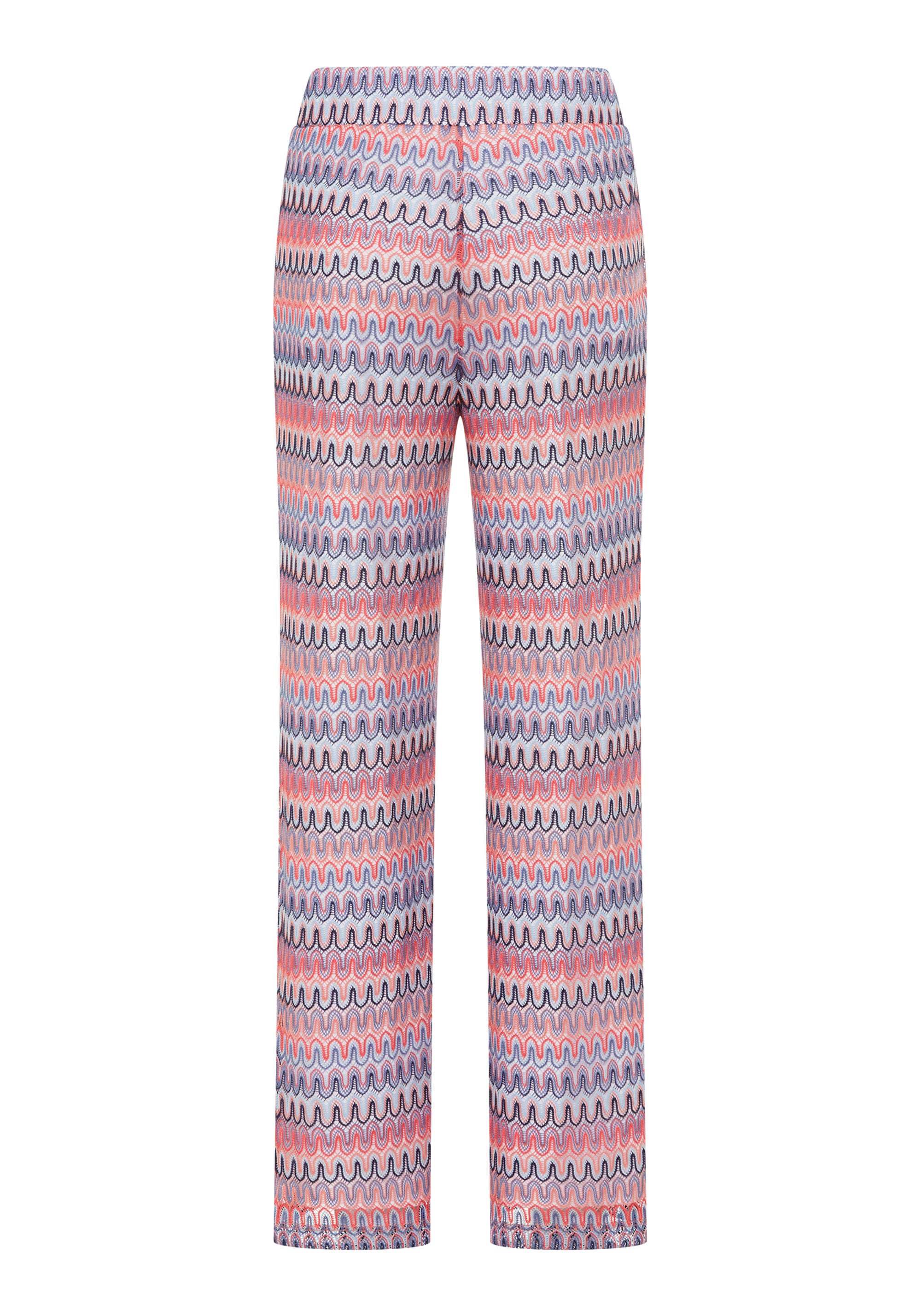 A designer-inspired statement piece, these pants feature an allover scalloped lacework design in vibrant colors.