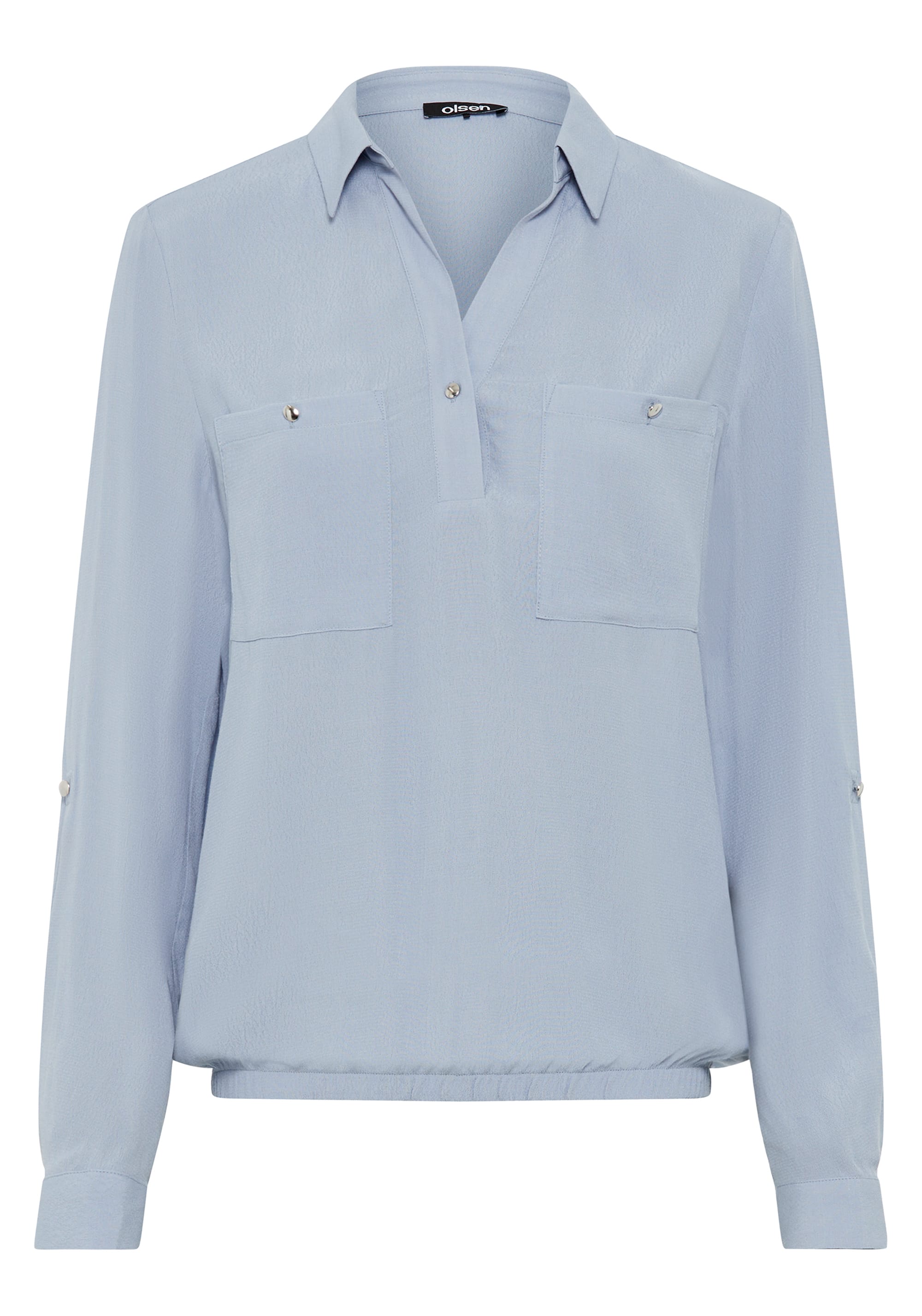 This lightweight blouse boasts a crepe-like finish and a range of stylish details.