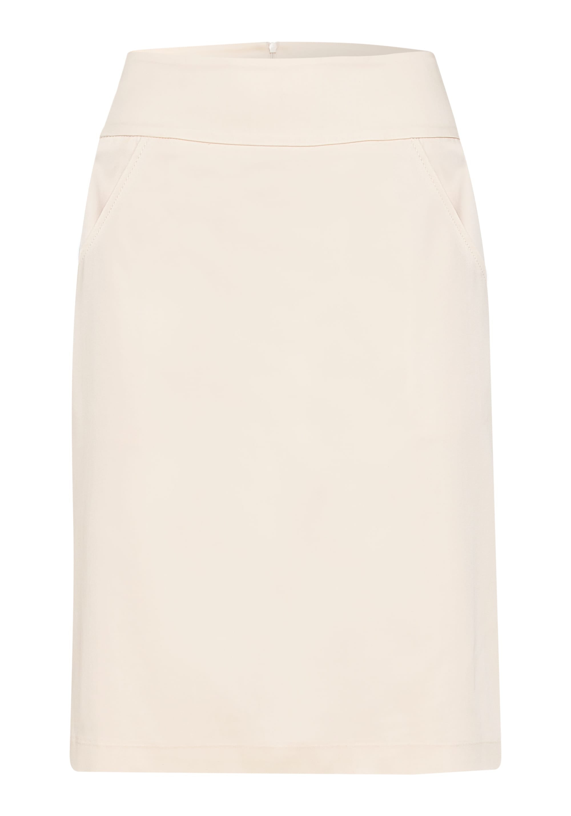 This skirt features a wide waistband and in-seam front pockets for a clean, classic look.