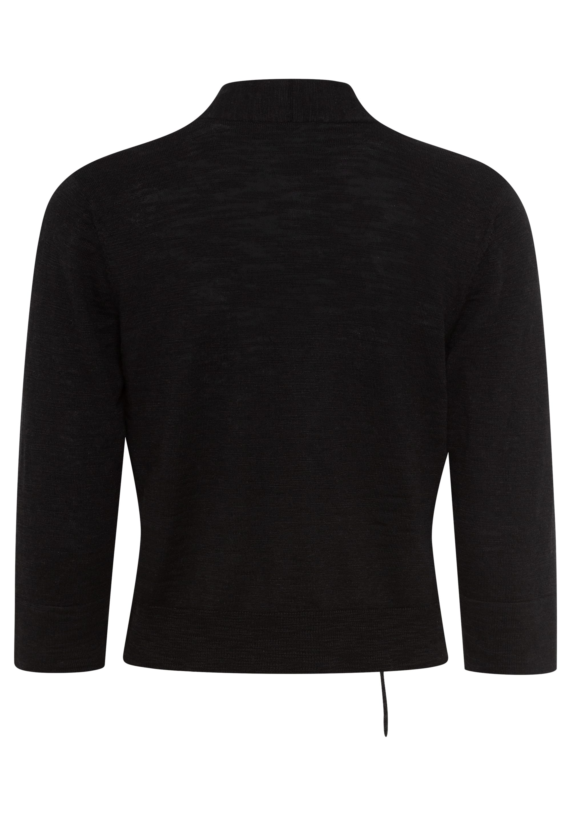 A lightweight cropped cardigan with a slub yarn effect and matching waist tie that is ideal for summer layering with tank tops and dresses.