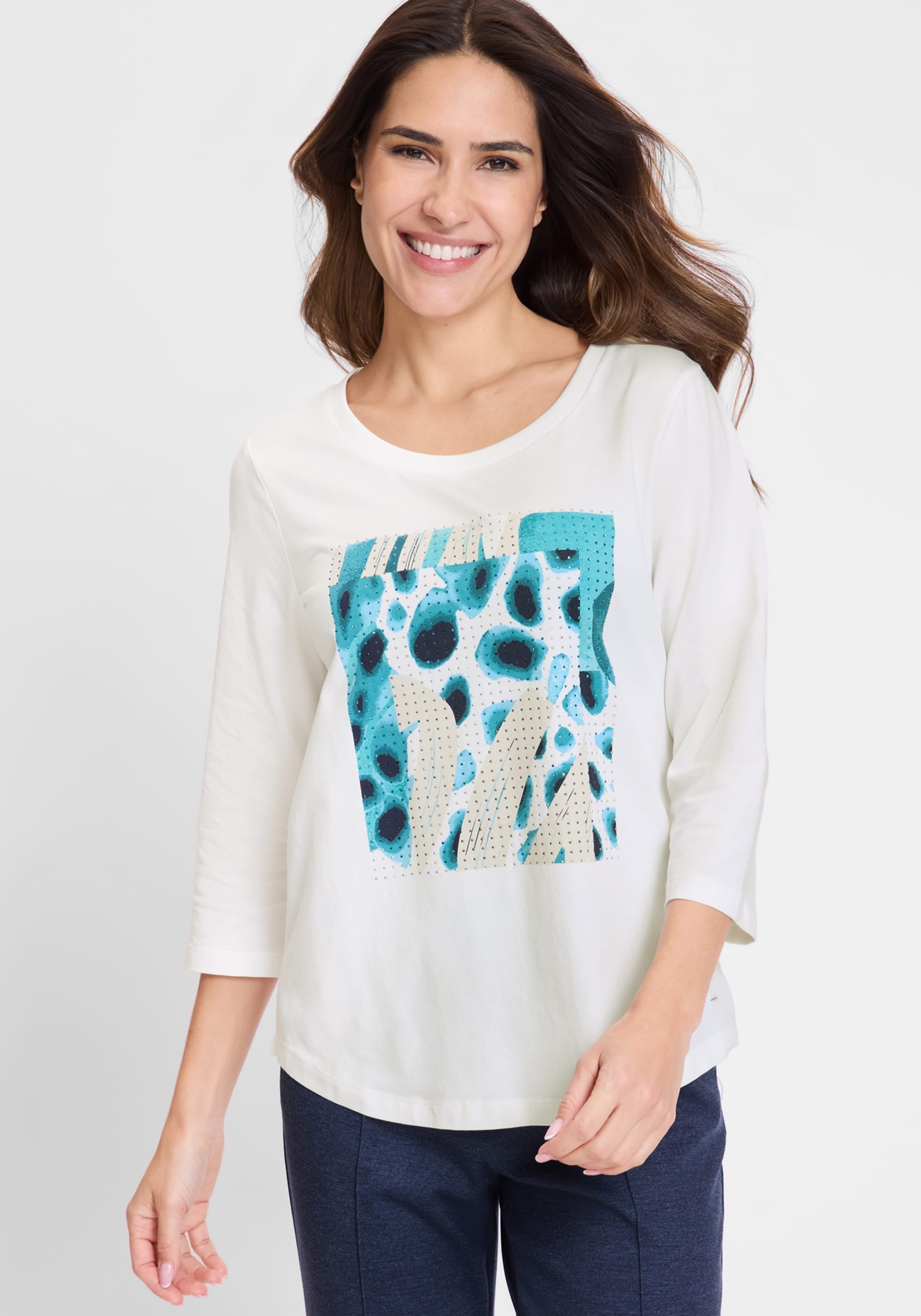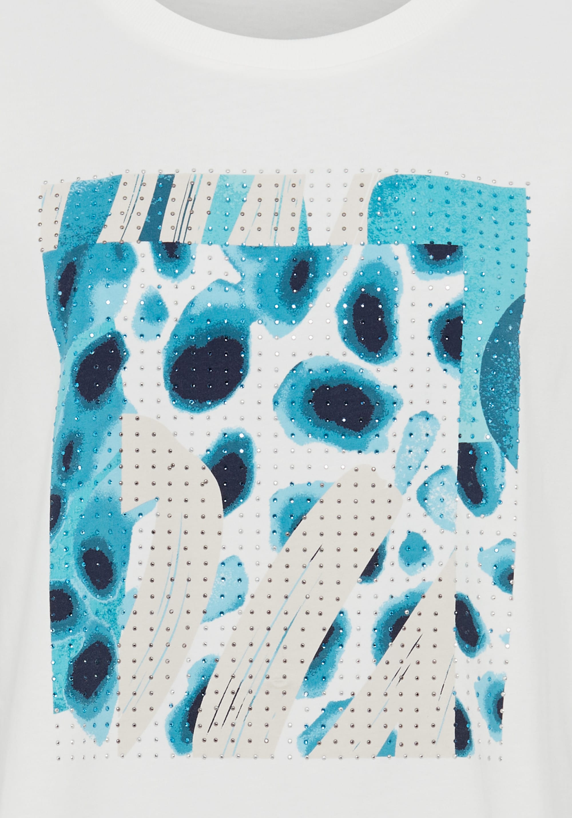 This comfortable t-shirt features a striking display of rhinestone embellishment on an abstract animal placement print at the centre front.