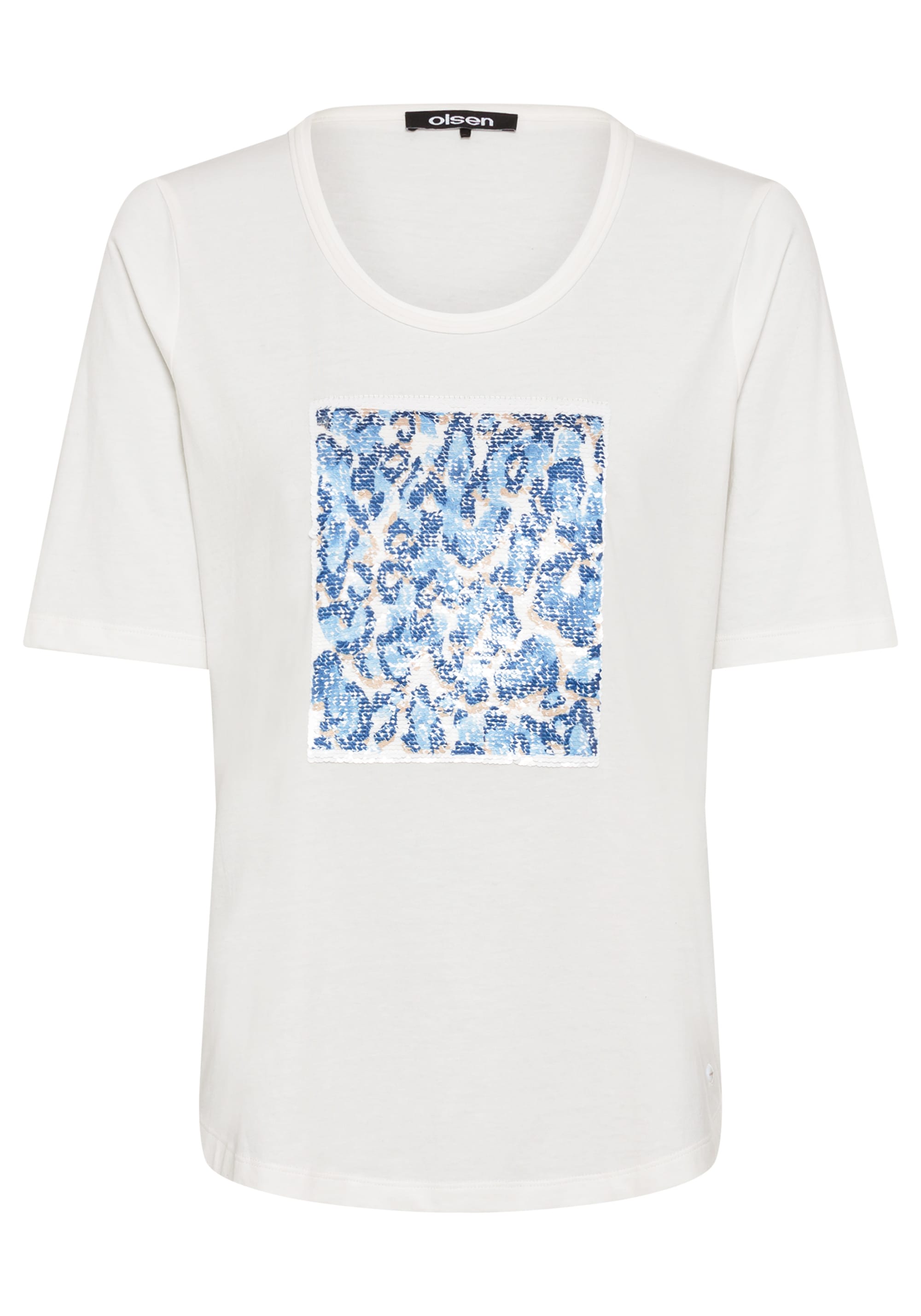 A fun and playful style, this cotton blend t-shirt features a center front sequin applique with a flip feature.