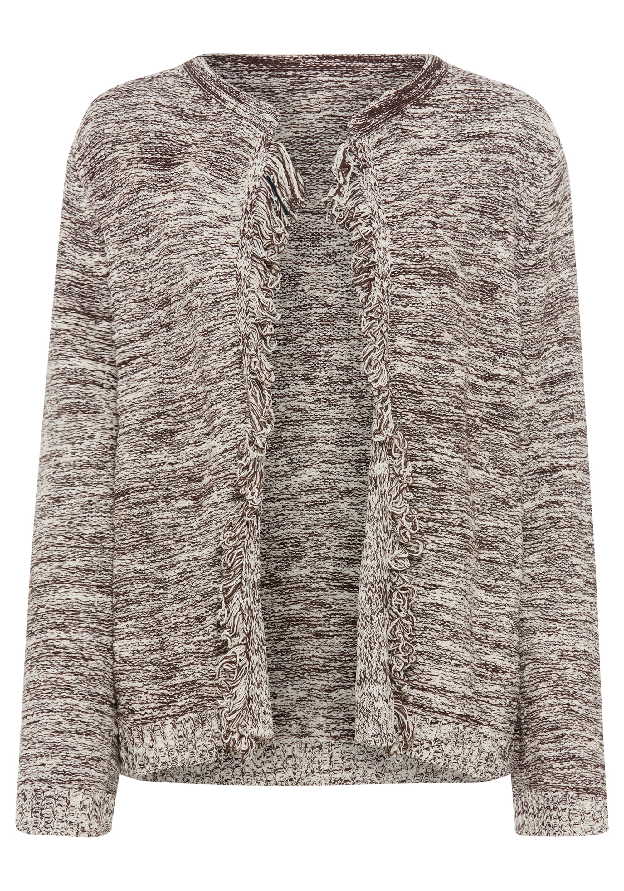From our latest Designer Choice capsule, this cardigan features a classic, collarless silhouette with an open front design trimmed in fringe for added flair.