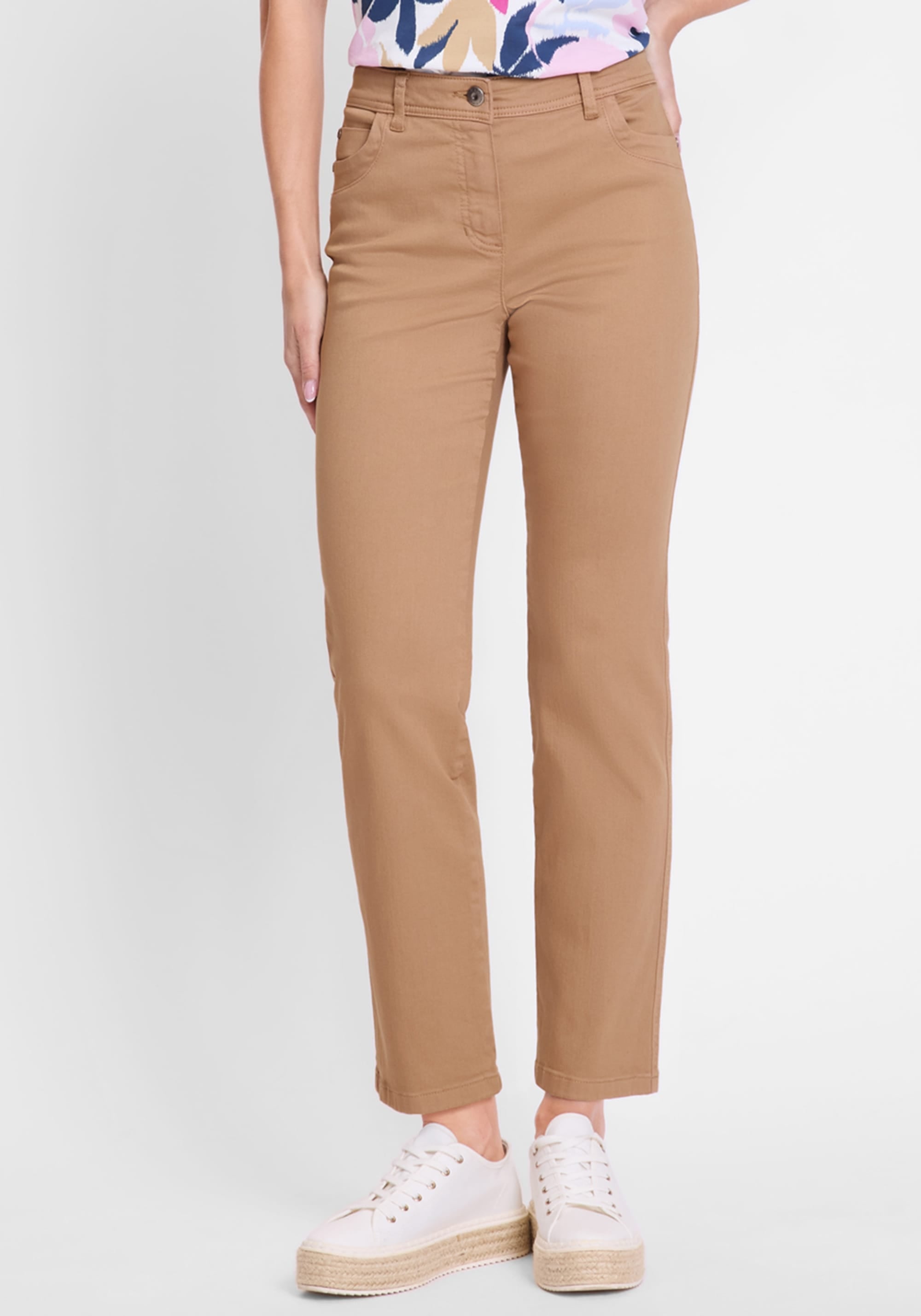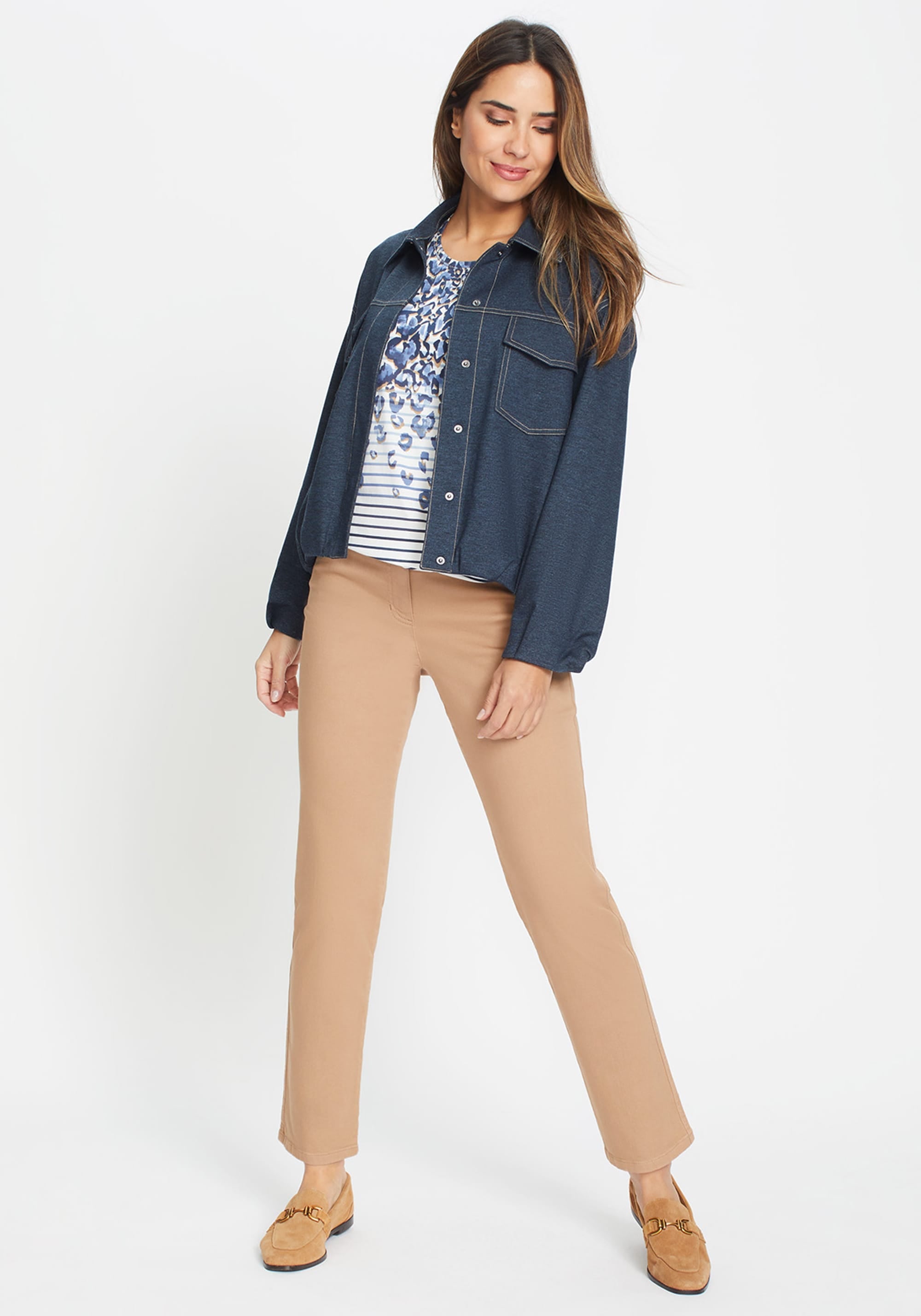 In a trending color with allover generous stretch, these cropped jeans provide all-day comfort while maintaining their shape.