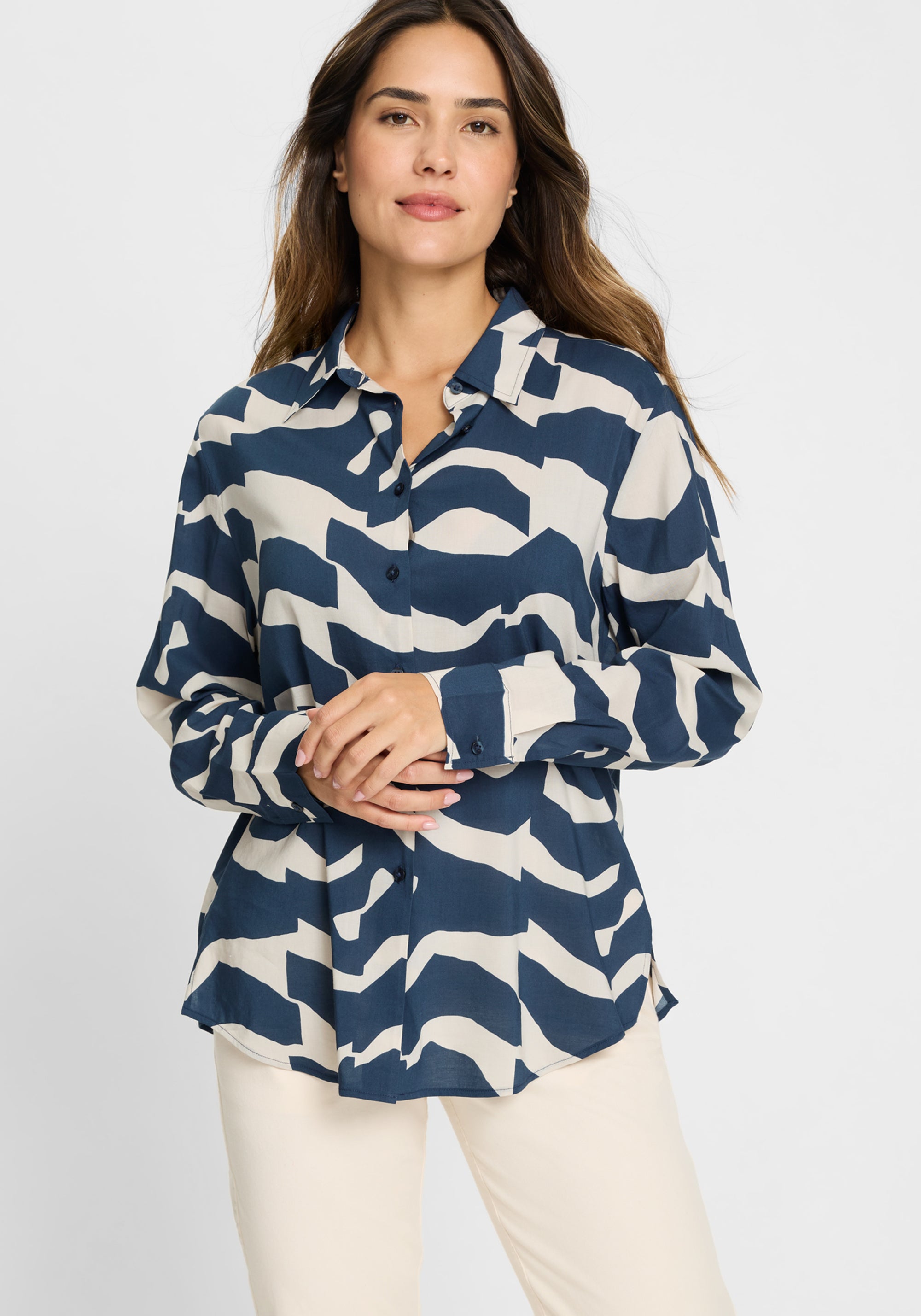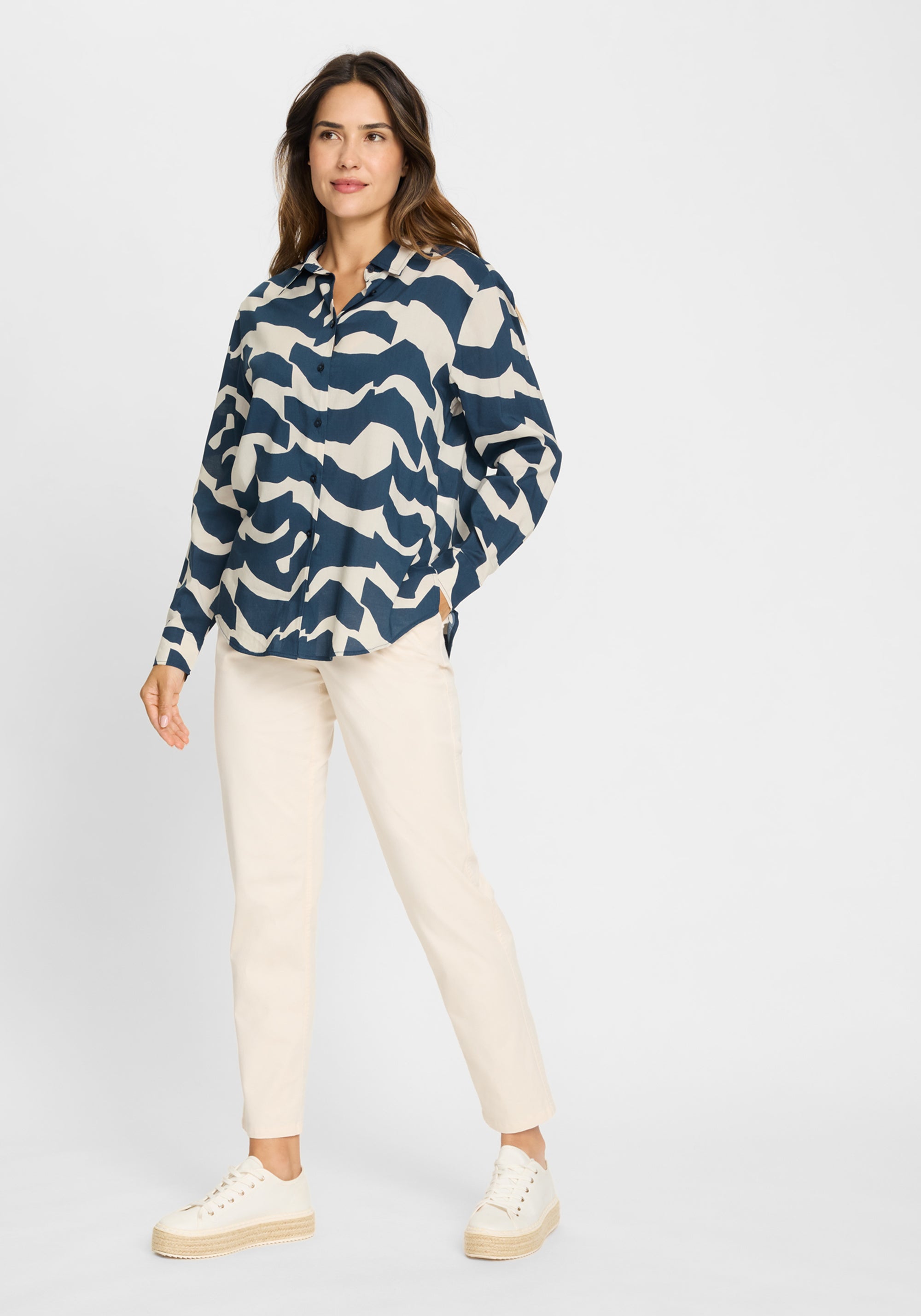 This sustainably chic shirt is crafted from a lightweight cotton-viscose blend, offering an airy feel.
