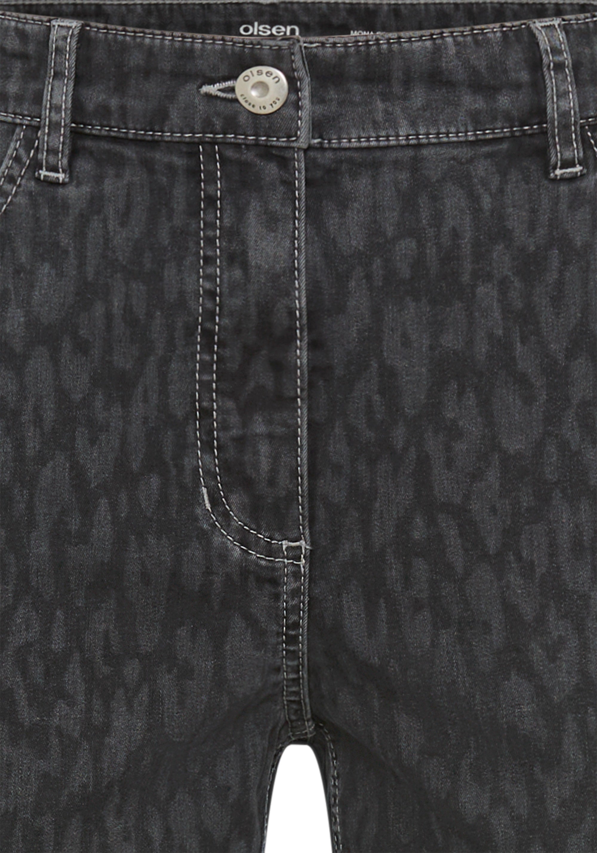 Our popular Mona fit jean is upgraded with a subtle washed allover leopard print for a stylish twist.