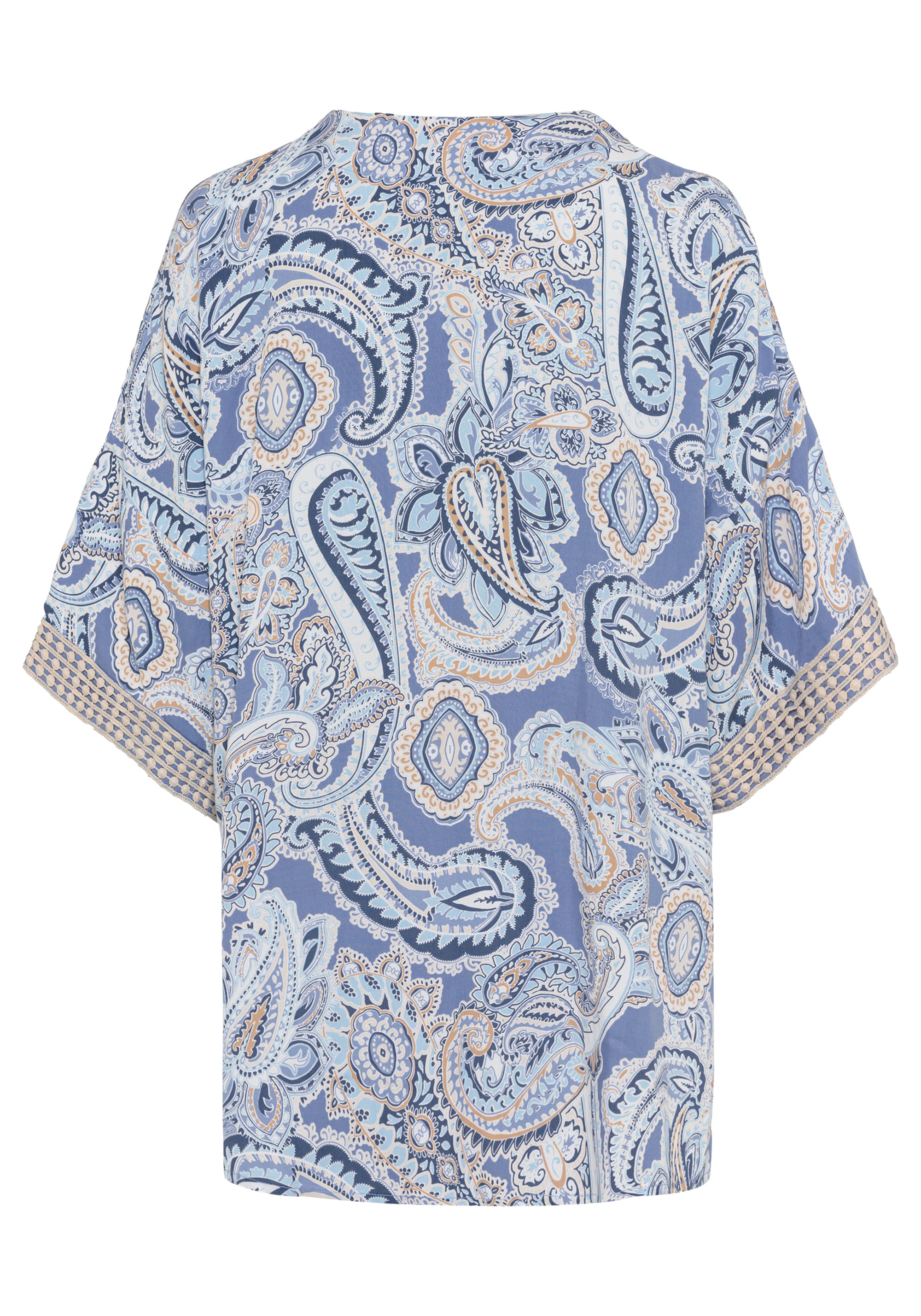 A striking paisley pattern adorns this trending kimono, crafted from lightweight and airy 100% viscose.