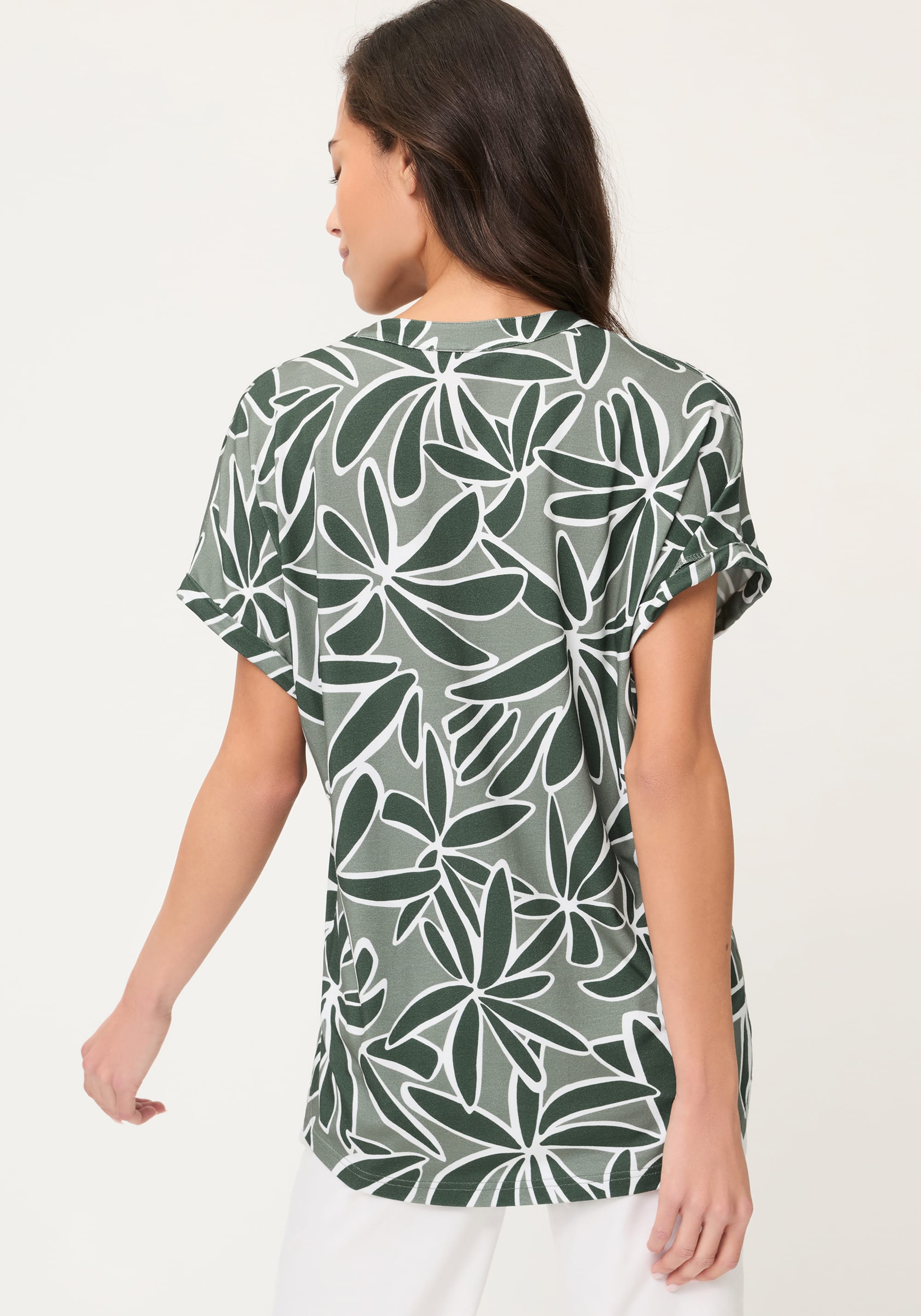 A fashion-forward T-shirt designed to elevate relaxed looks with an expressive, resort-inspired feel.