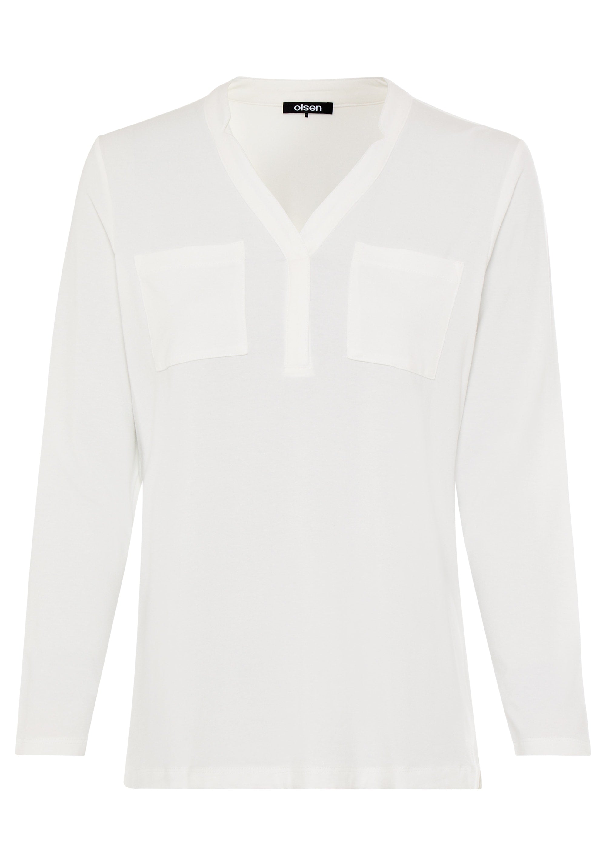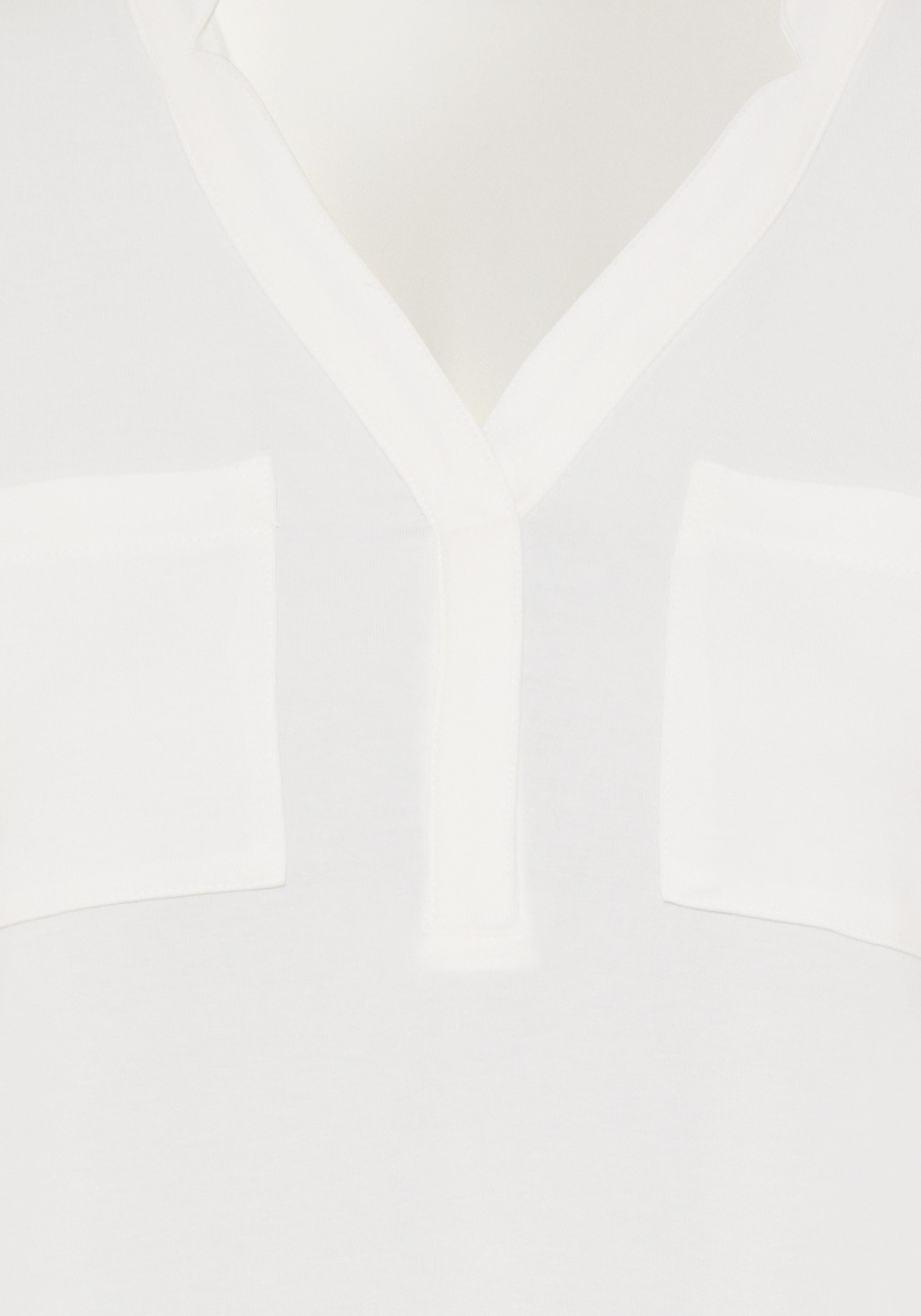 A refined essential, this white tee is elevated with a half-placket tunic neckline and two front patch pockets.
