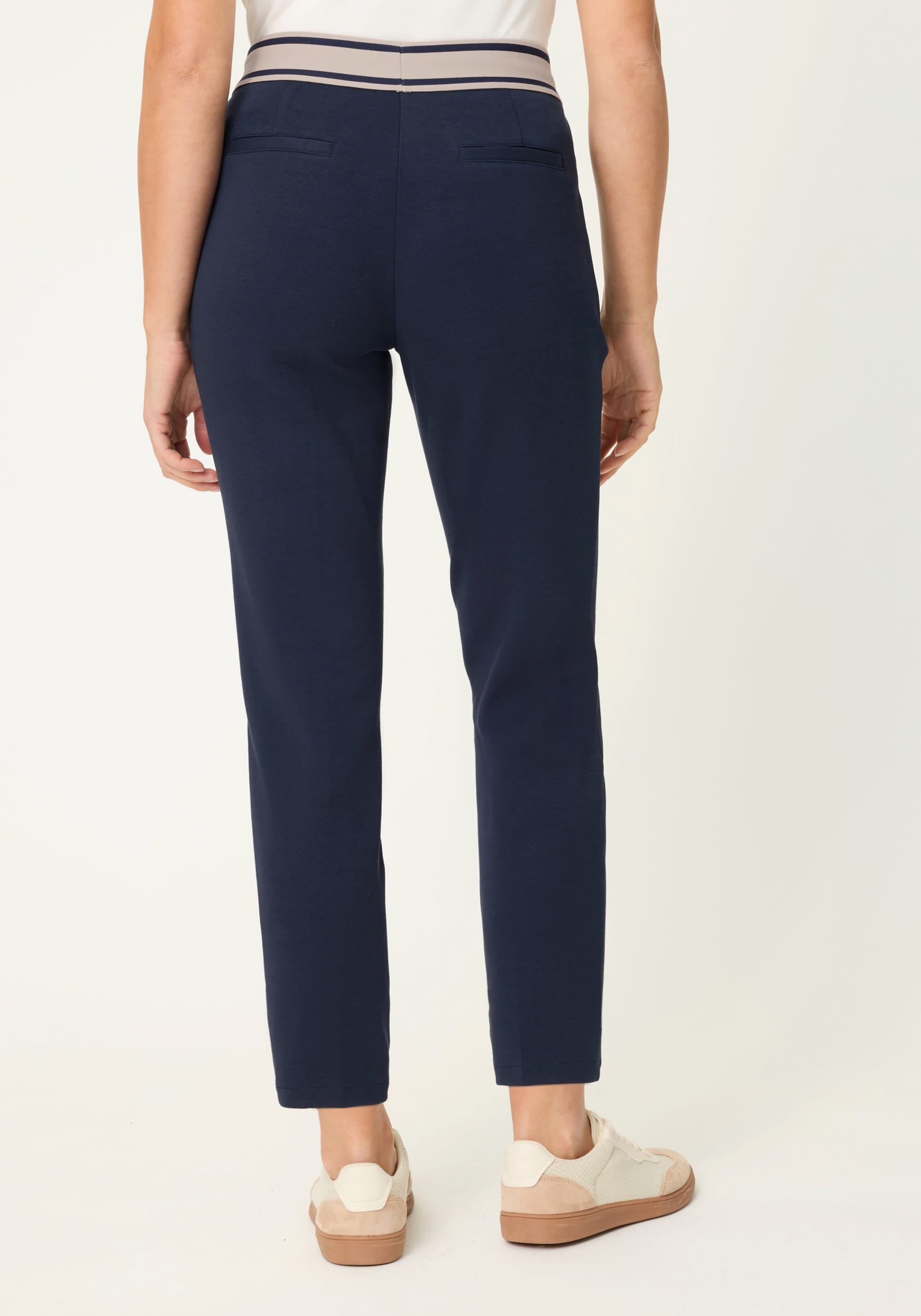 A modern take on casual chic, these sporty pull-on trousers offer a sleek, streamlined look with the comfort of a soft cotton-blend knit.