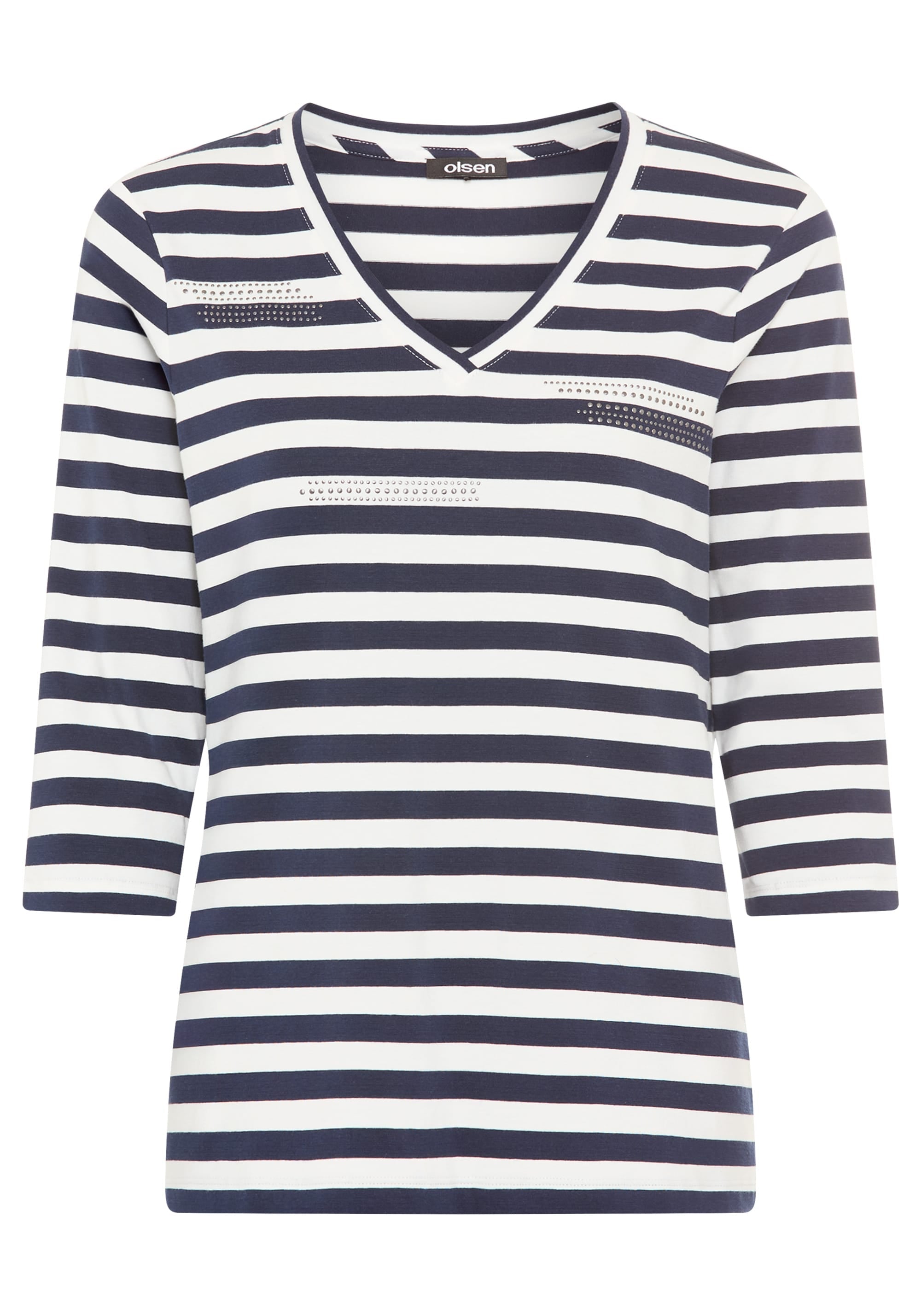 Classic stripes get a fresh update with a hint of sparkle in this V-neck t-shirt.