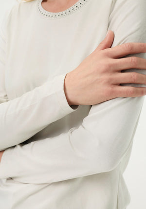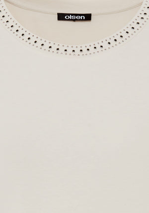 A timeless tee with a touch of sparkle, this piece is elevated by rhinestone embellishments along the neckline.