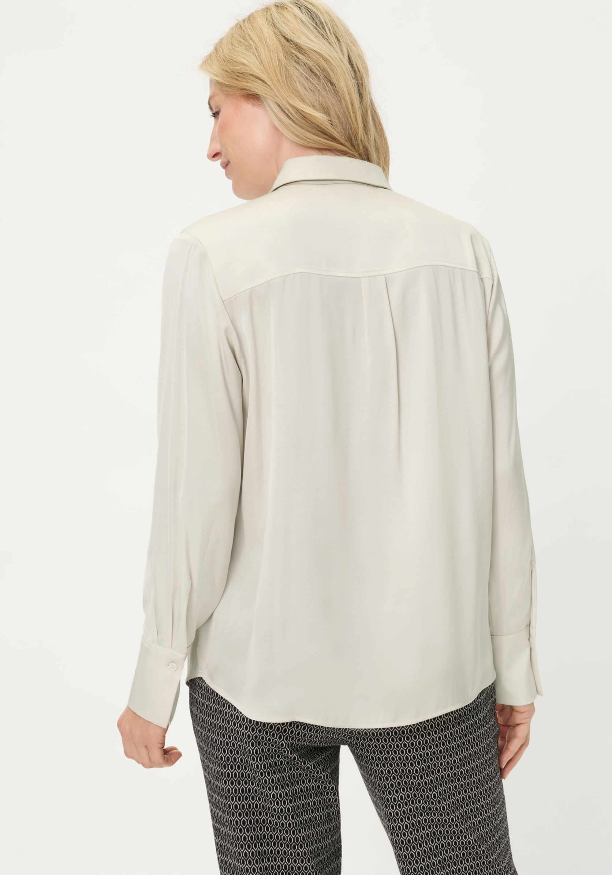 A sleek satin-effect shirt that feels smooth and luxurious to the touch.