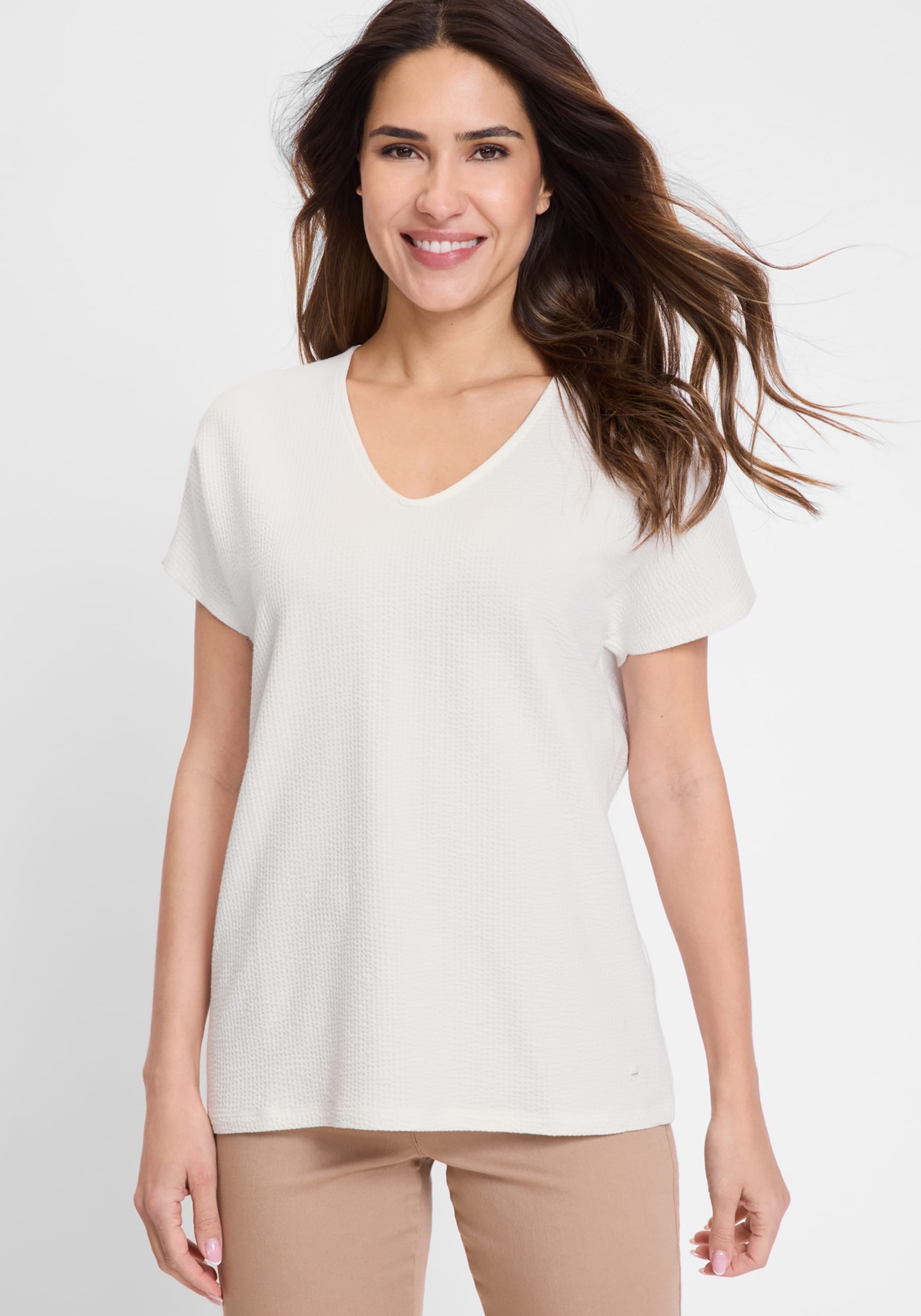 This effortless and versatile t-shirt features the allover puckered texture of seersucker in a tonal design, offering a clean and streamlined look.