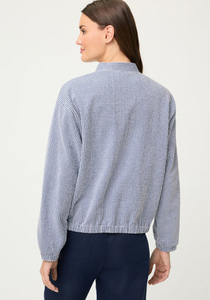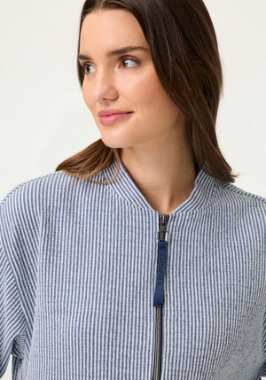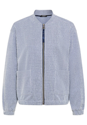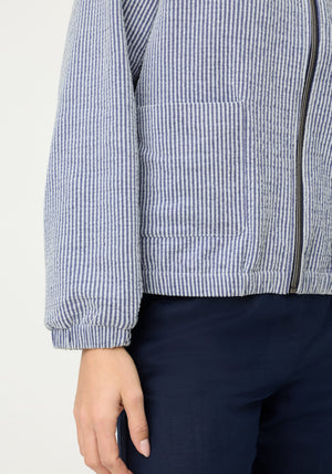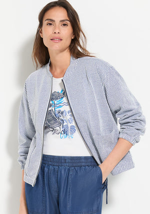 This sporty, modern jacket stands out with its clean lines and textured seersucker stripe for a fresh spring-summer look.