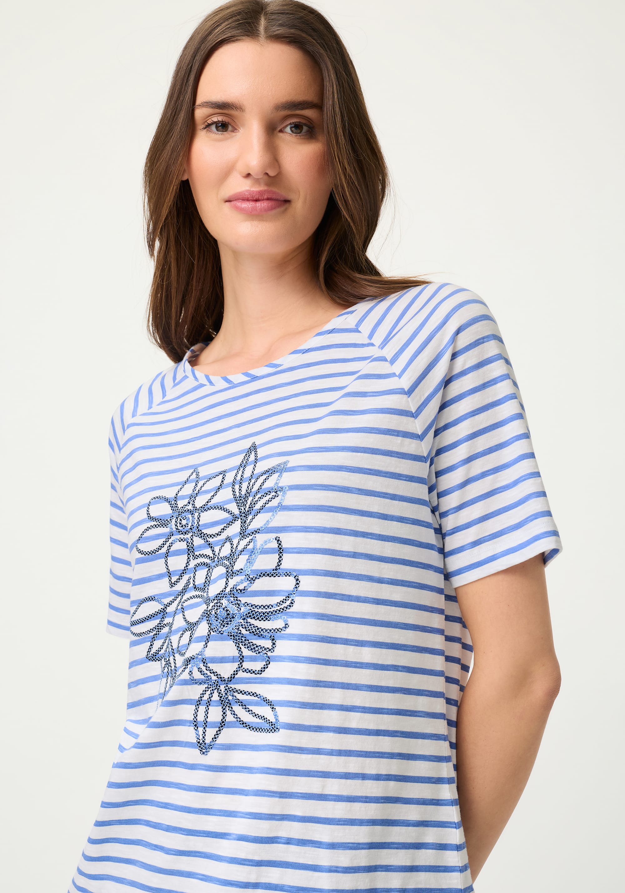 Graphic stripes and thoughtful details give this T-shirt a fresh, modern edge, elevated by a sparkling floral motif placed at the centre front.