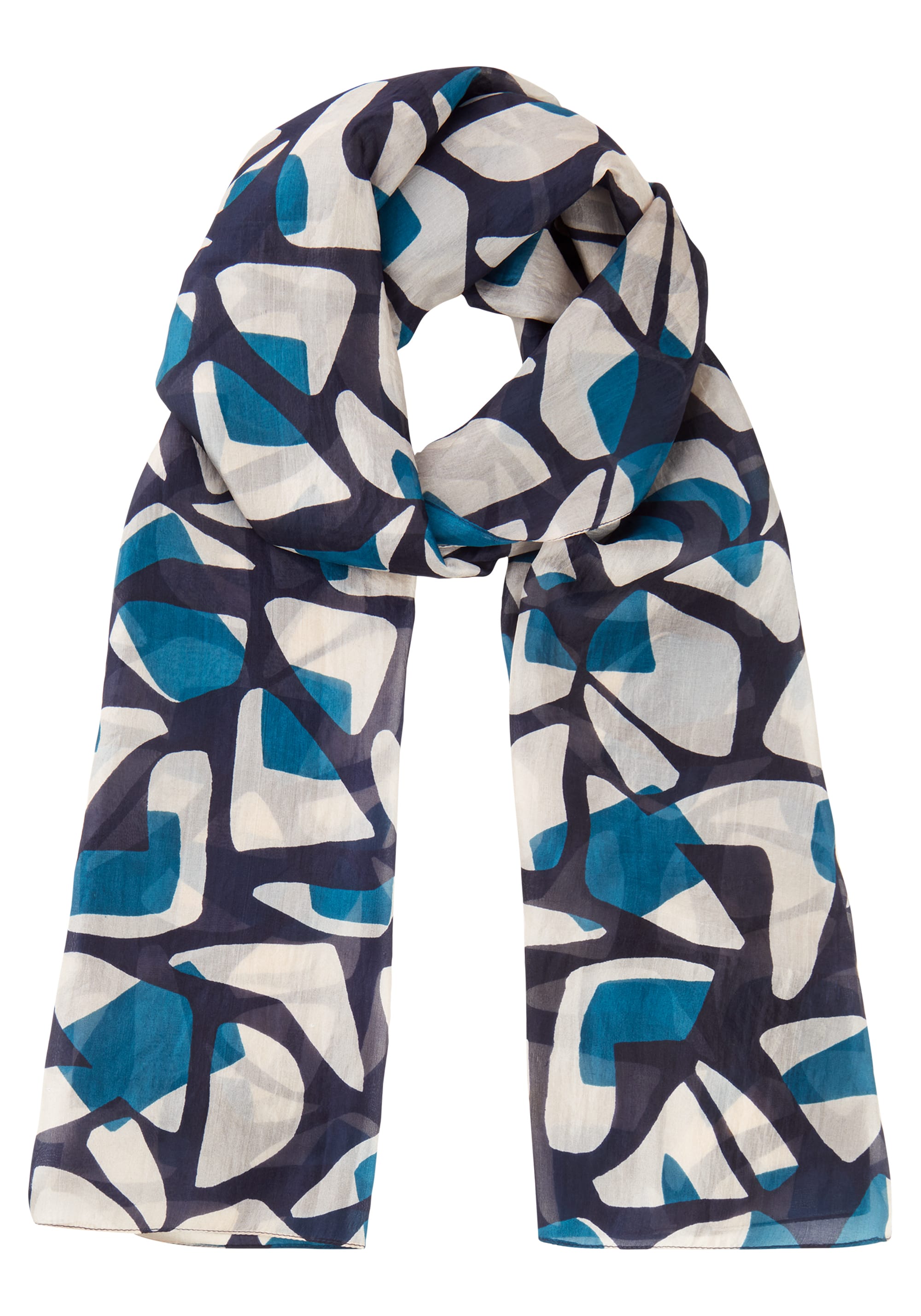 Delightfully soft and airy thanks to its pure silk make, this scarf adds a luxurious finishing touch to your look with its allover modern graphic design.