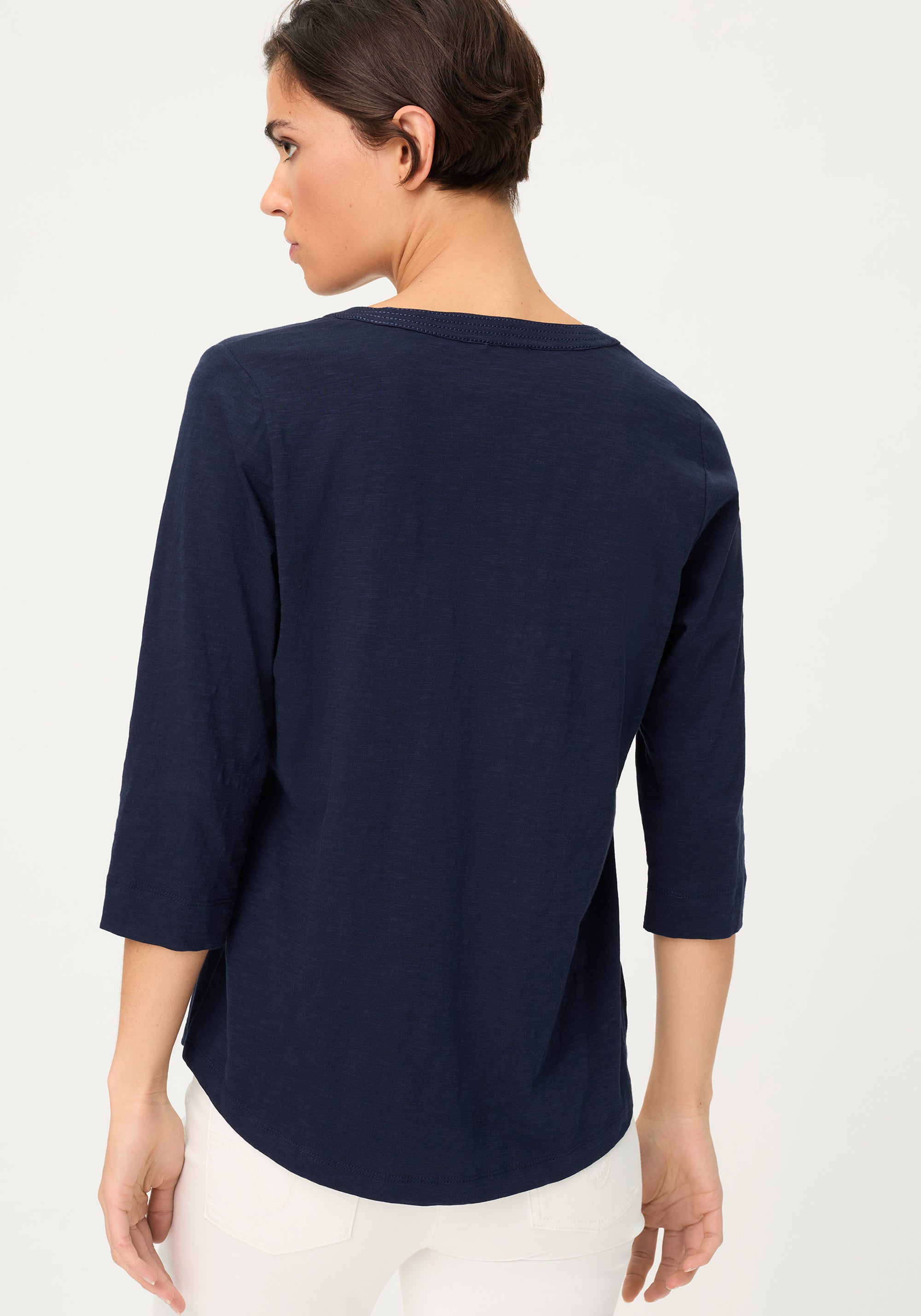 A versatile everyday essential, this plain-coloured T-shirt delivers timeless style with thoughtful feminine details for effortless wear.