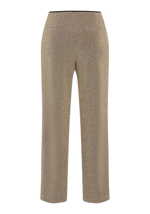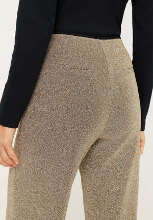 Made in a stretch-friendly fabric with shimmering metallic shades, these pants bring a touch of festive elegance.