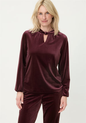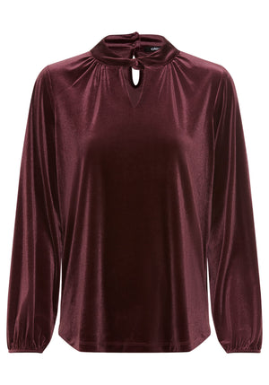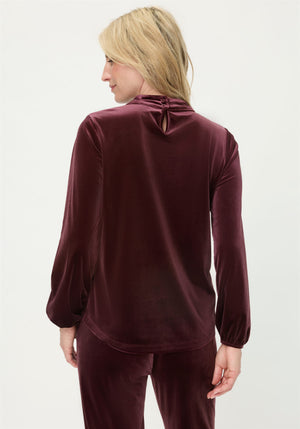 The luxurious shimmer of velvet gives this top an elegant yet effortless appeal.