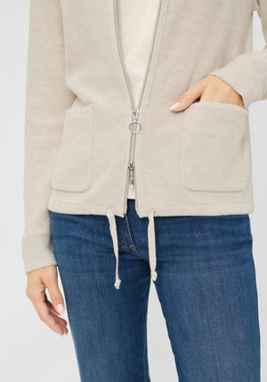 A cozy and easy-to-wear layering piece, this style features a practical double zipper front closure and two front pockets.