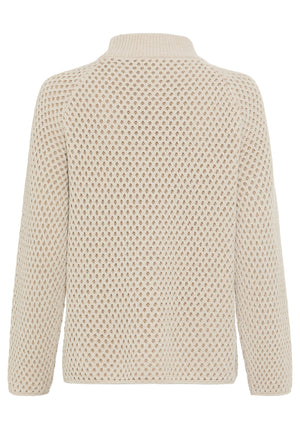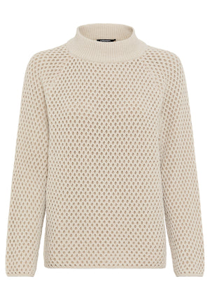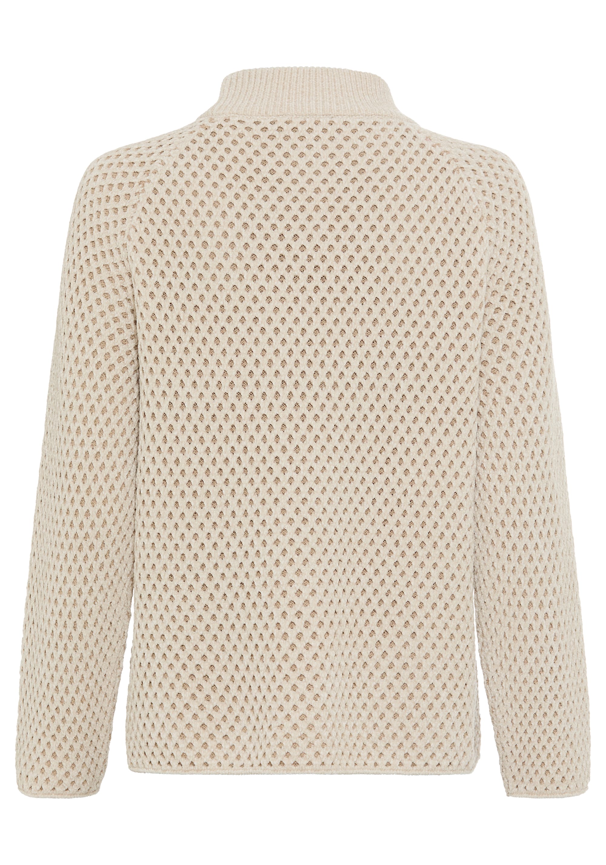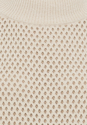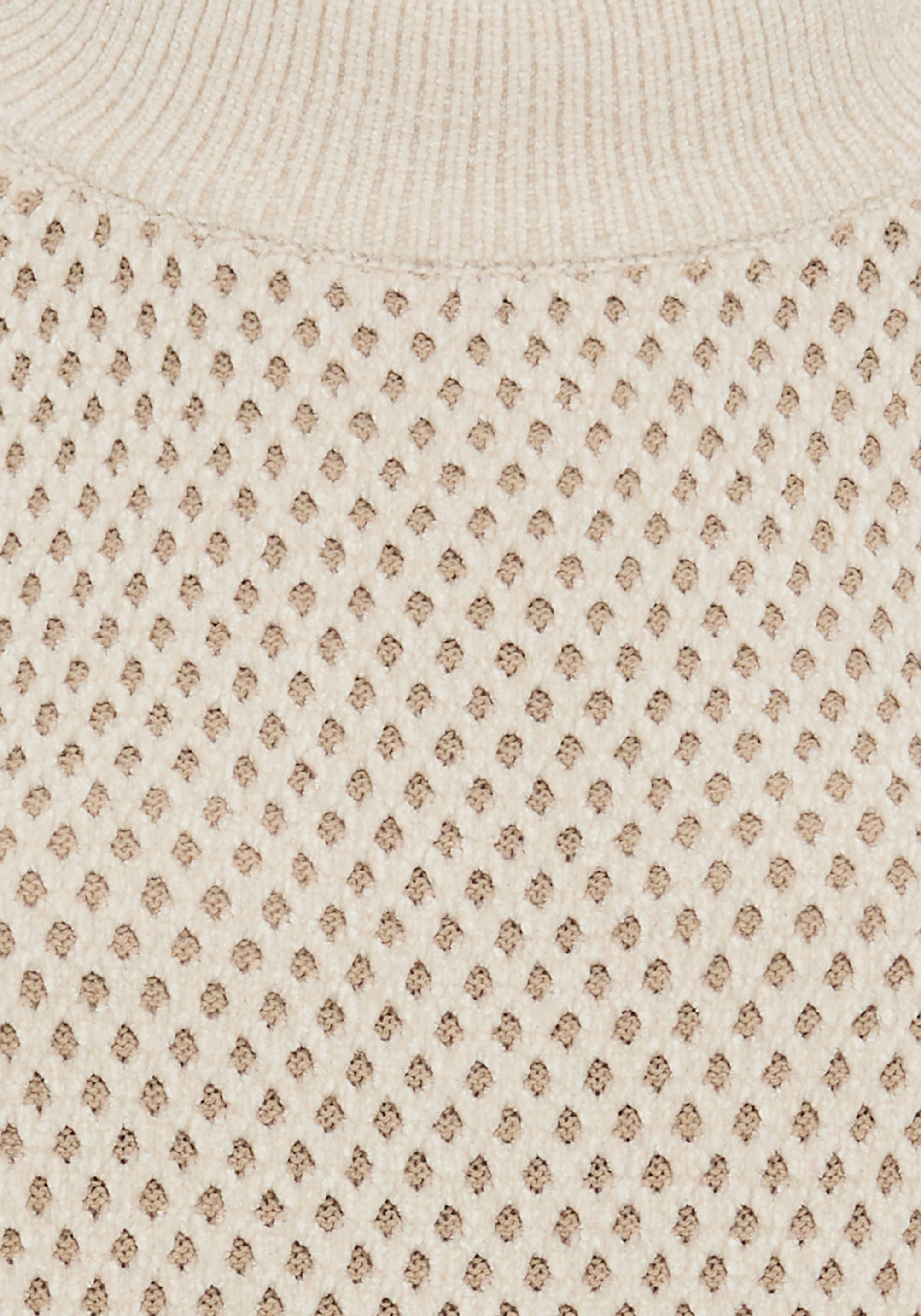 This mock neck sweater stands out with its unique lattice stitchwork crafted from the softest chenille yarns.