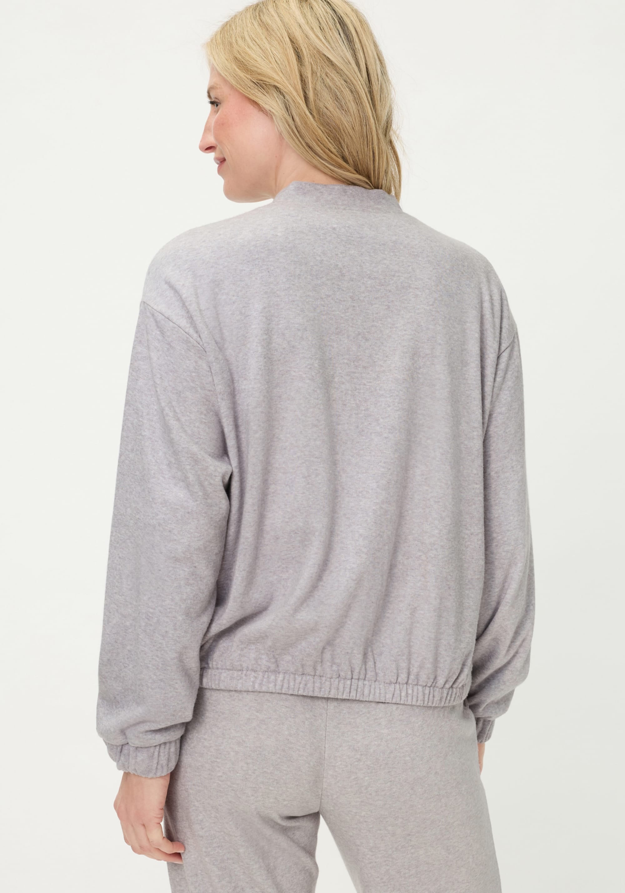 • The mandarin-style stand-up collar creates a clean, modern line, while dropped shoulders add a relaxed touch.