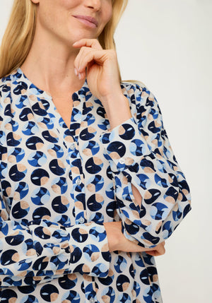 A light and airy blouse, this style feels smooth to the touch and stands out with its whimsical all-over dot print for an effortlessly modern look.