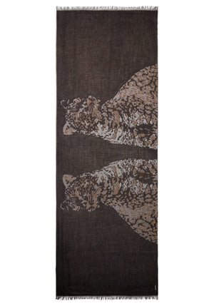 A standout scarf that turns heads with its artistic twist on classic animal print.