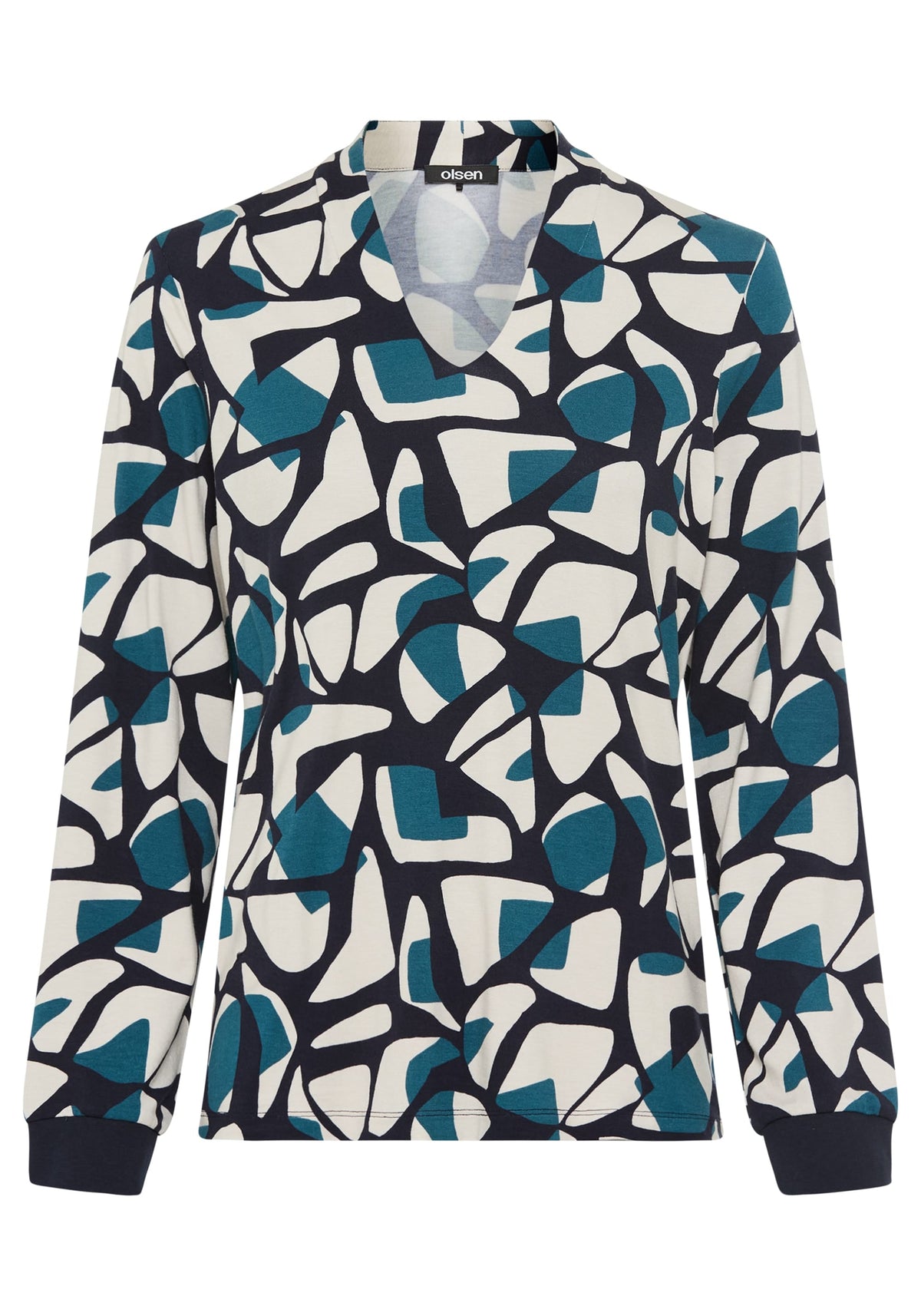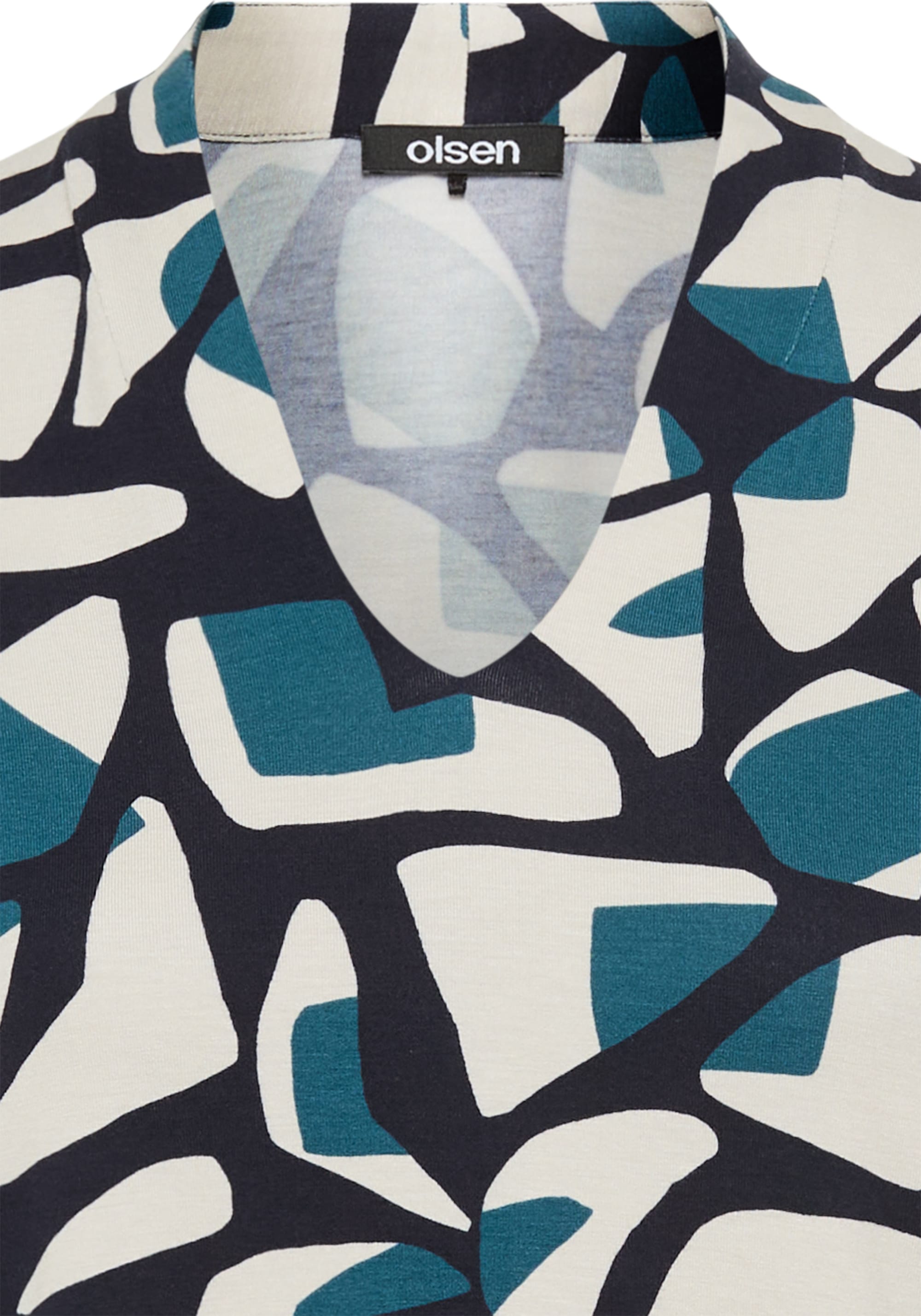 Ce t-shirt à encolure en V, super doux et léger, se distingue par son imprimé graphique moderne.