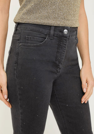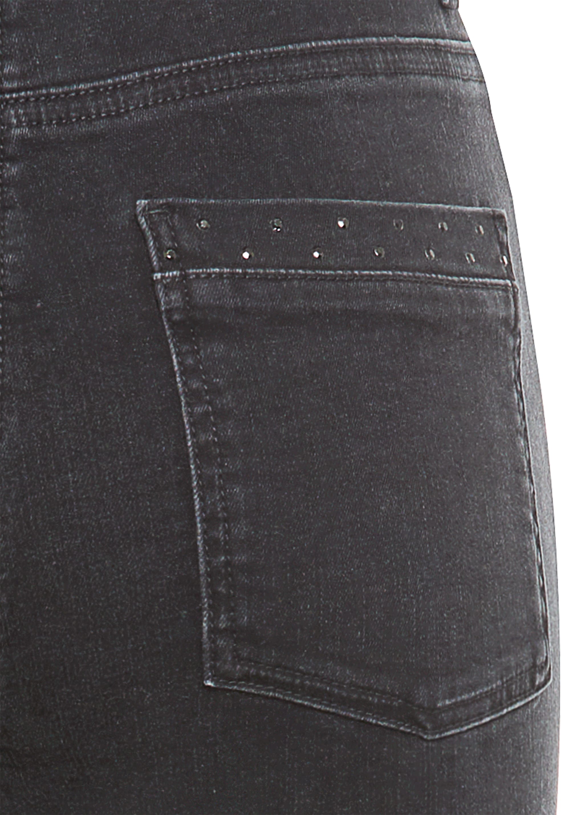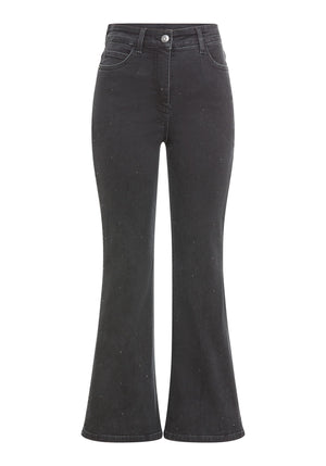 Classic 5-pocket styling meets modern sparkle with these cropped bootcut jeans adorned with tonal rhinestones.