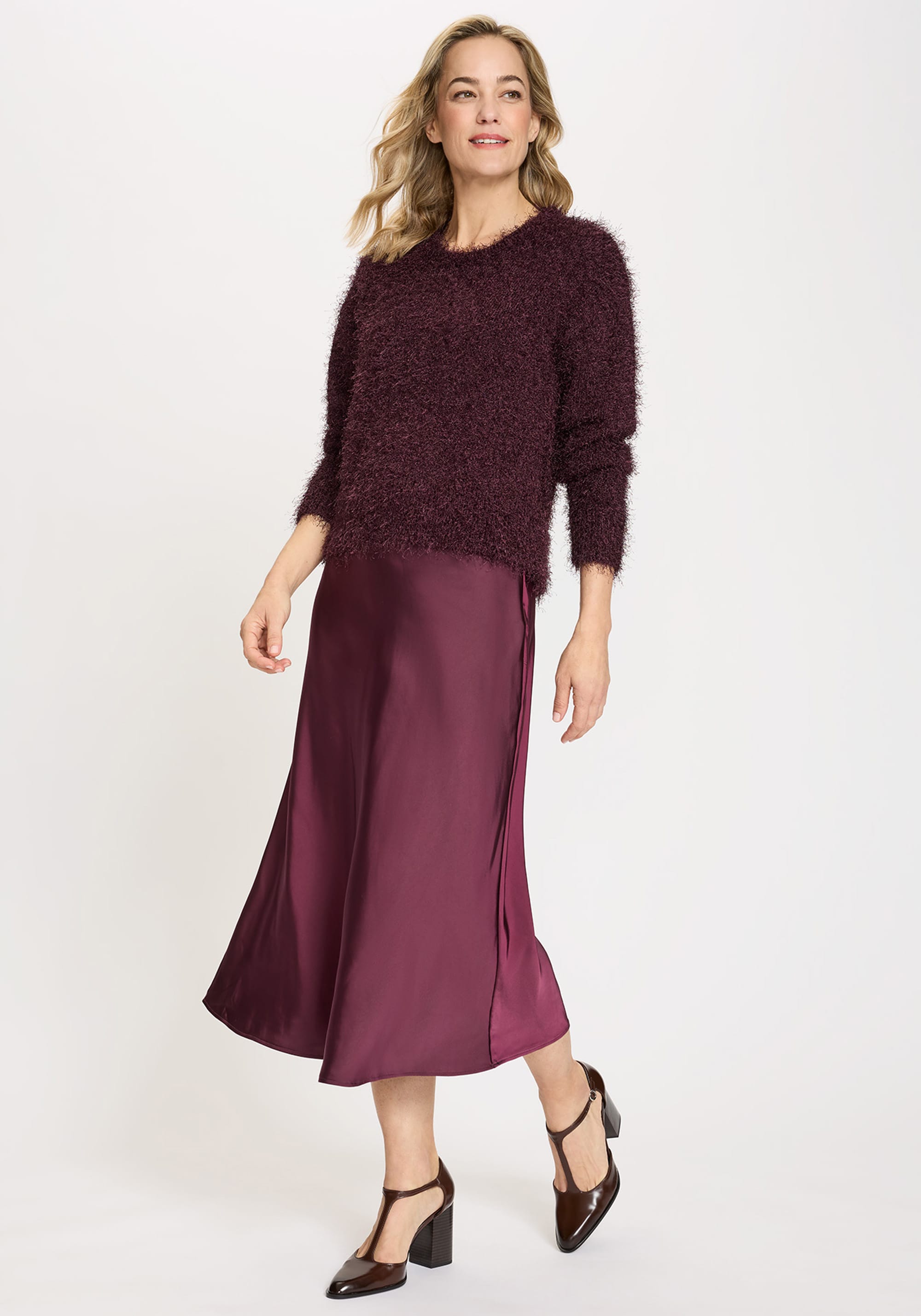 An elegant midi skirt crafted from luxurious satin-effect fabric with a beautiful sheen.