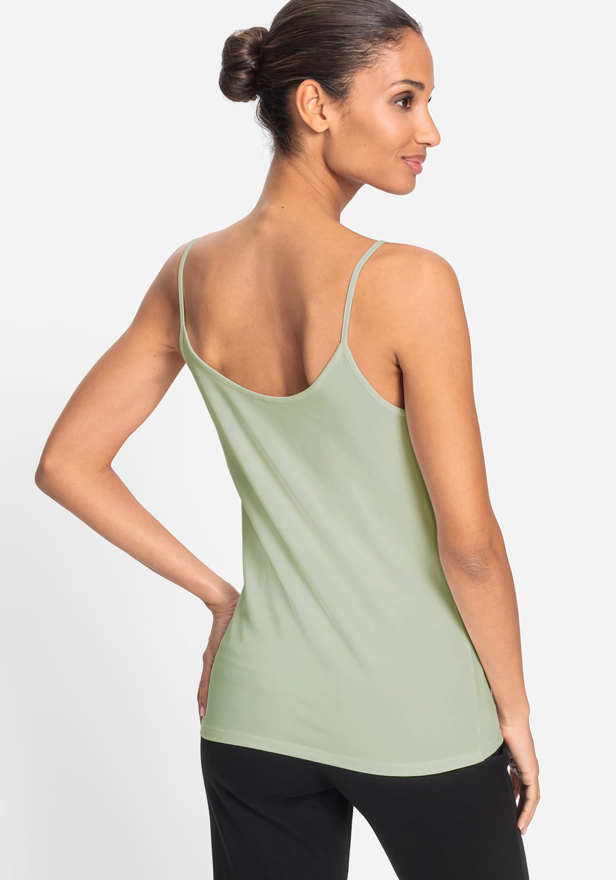 A feminine wardrobe essential with versatile appeal, this sleeveless spaghetti-strap top is perfect for warm days or for layering under blazers, cardigans, and open-knit sweaters for added coverage.