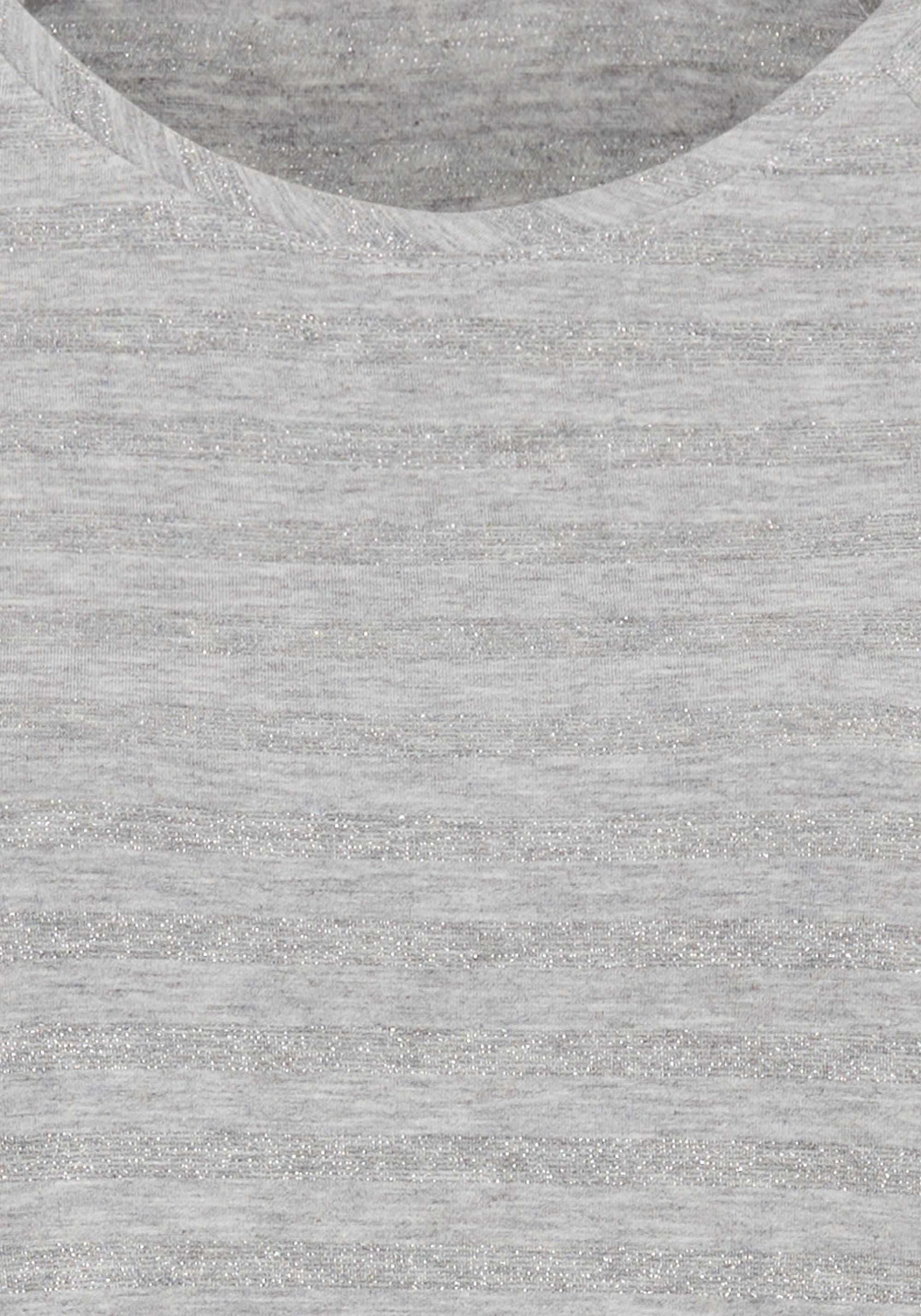 • Son motif intégral à rayures scintillantes et son encolure ronde revisitée créent un look chic et féminin.