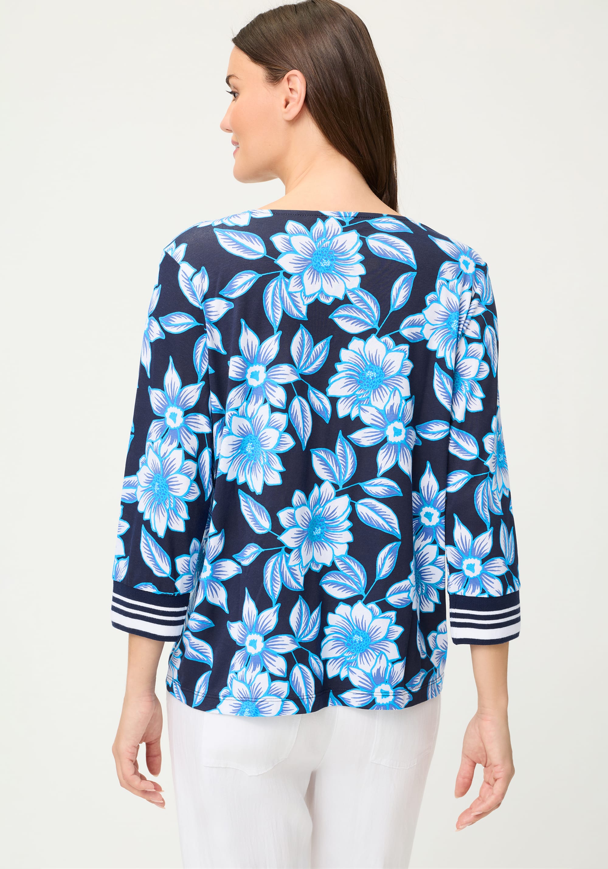 A bold allover floral print brings vibrant energy to this everyday essential, creating a look that feels fresh, feminine, and confident.