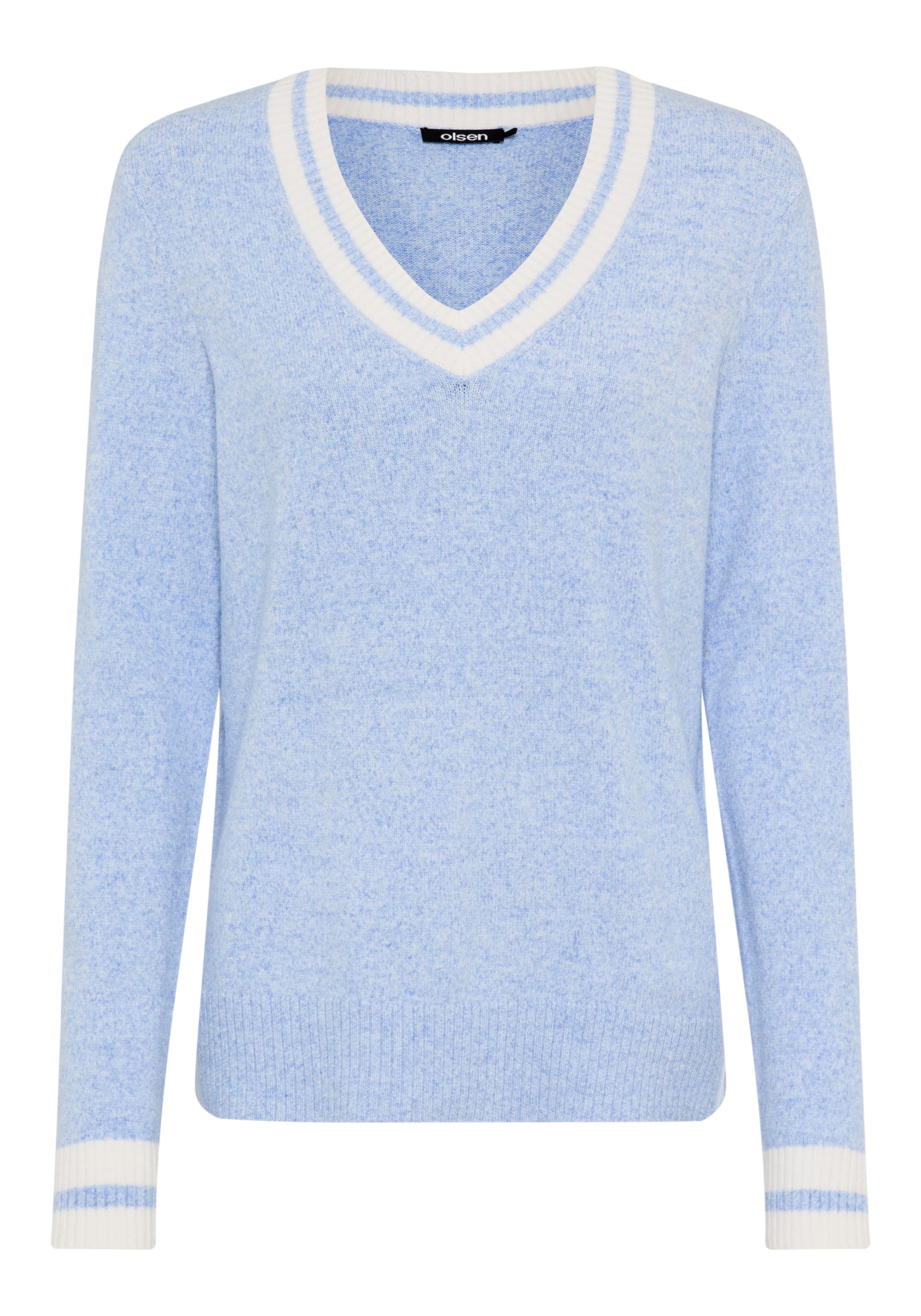 A must-have for every day, this V-neck sweater offers timeless elegance with a clean, refined design crafted from soft mélange yarns for a subtle two-tone look.