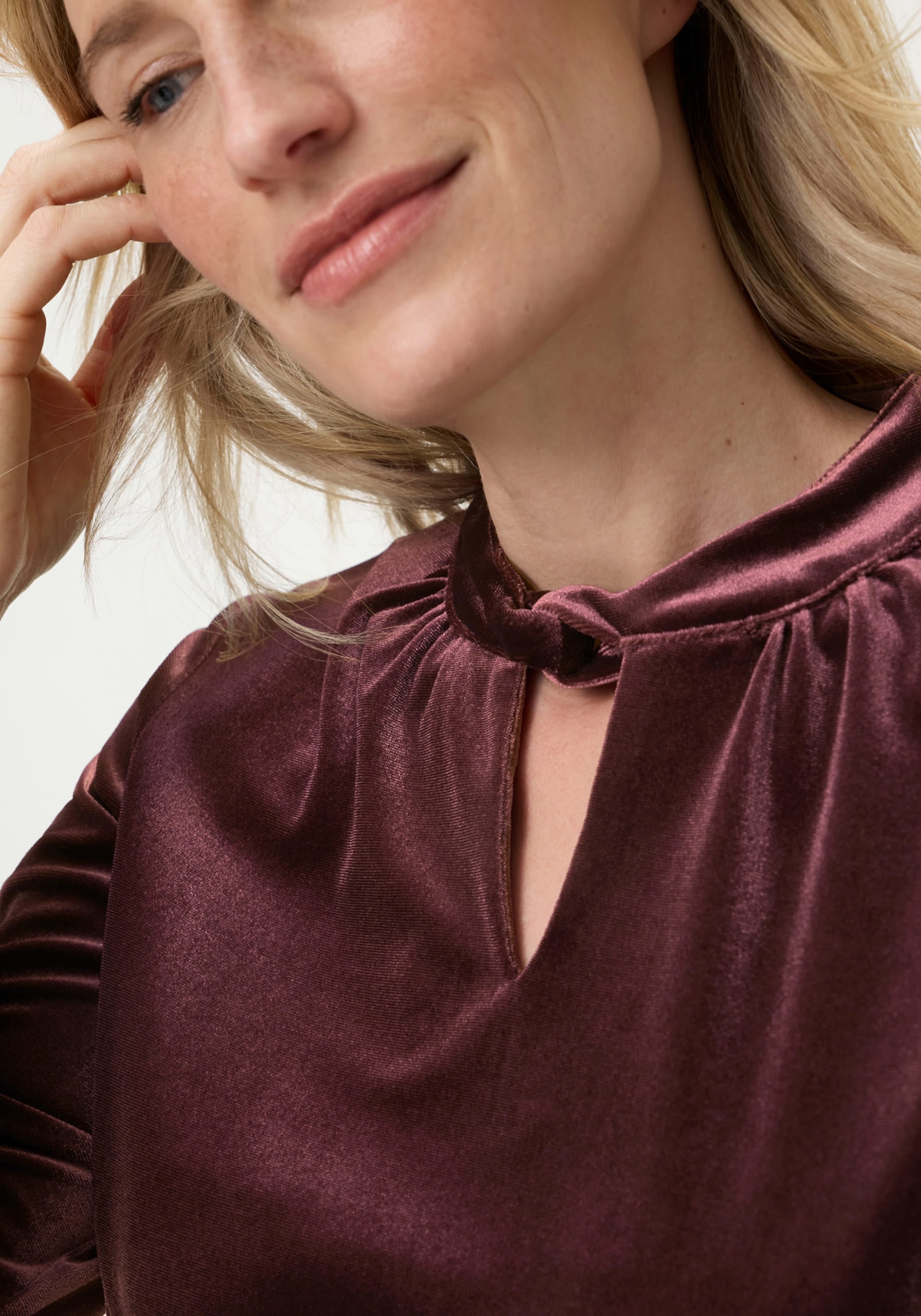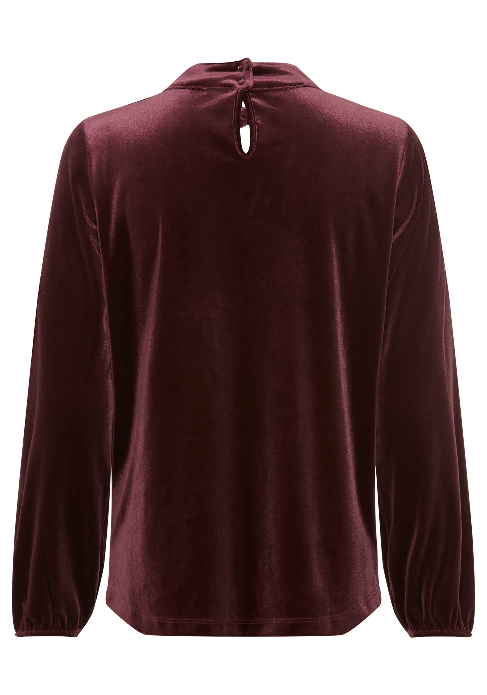 The luxurious shimmer of velvet gives this top an elegant yet effortless appeal.