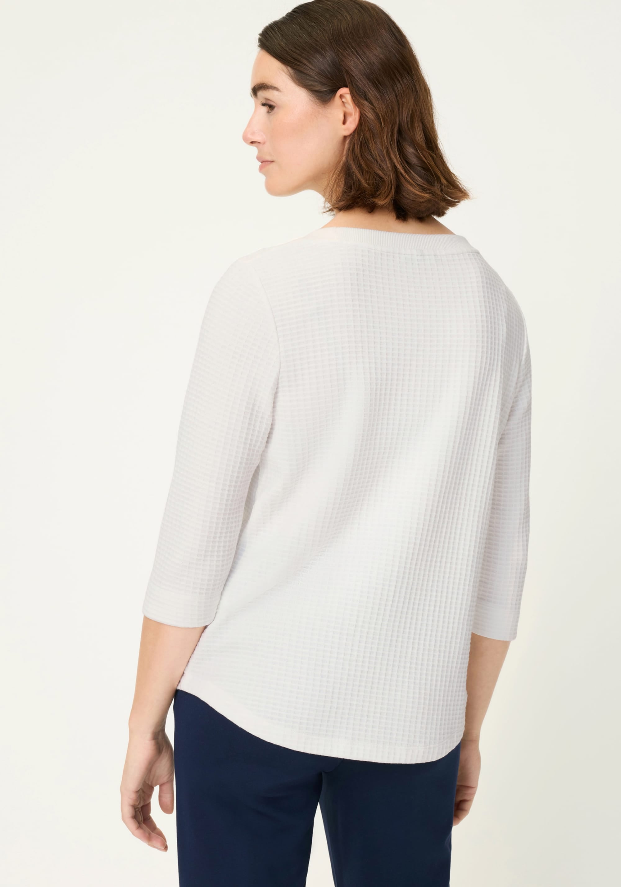 A stylish everyday classic, this plain-coloured T-shirt stands out with its modified round neckline that adds a soft, feminine touch to its clean design.