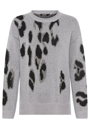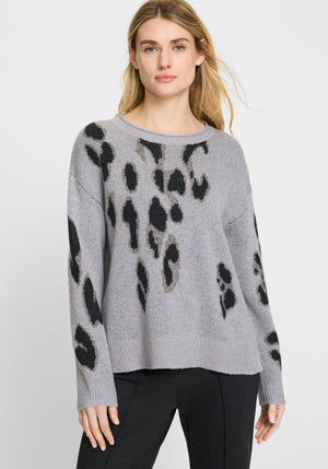 Cozy yarns combine with a modern abstract leopard pattern to create a striking statement sweater.