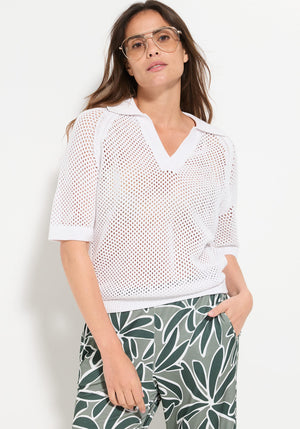 A clean, modern short-sleeved sweater designed as an easy essential for polished everyday style.