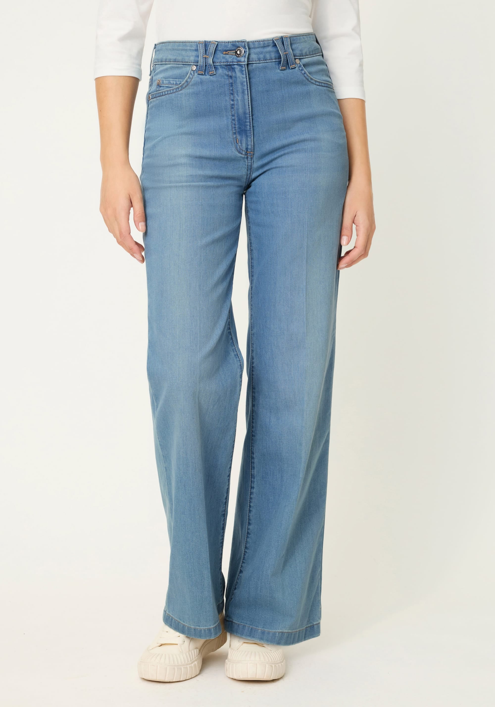 A modern take on casual denim, these wide-leg jeans deliver a clean, effortless silhouette with a subtle sun-kissed wash for an easy, contemporary look.