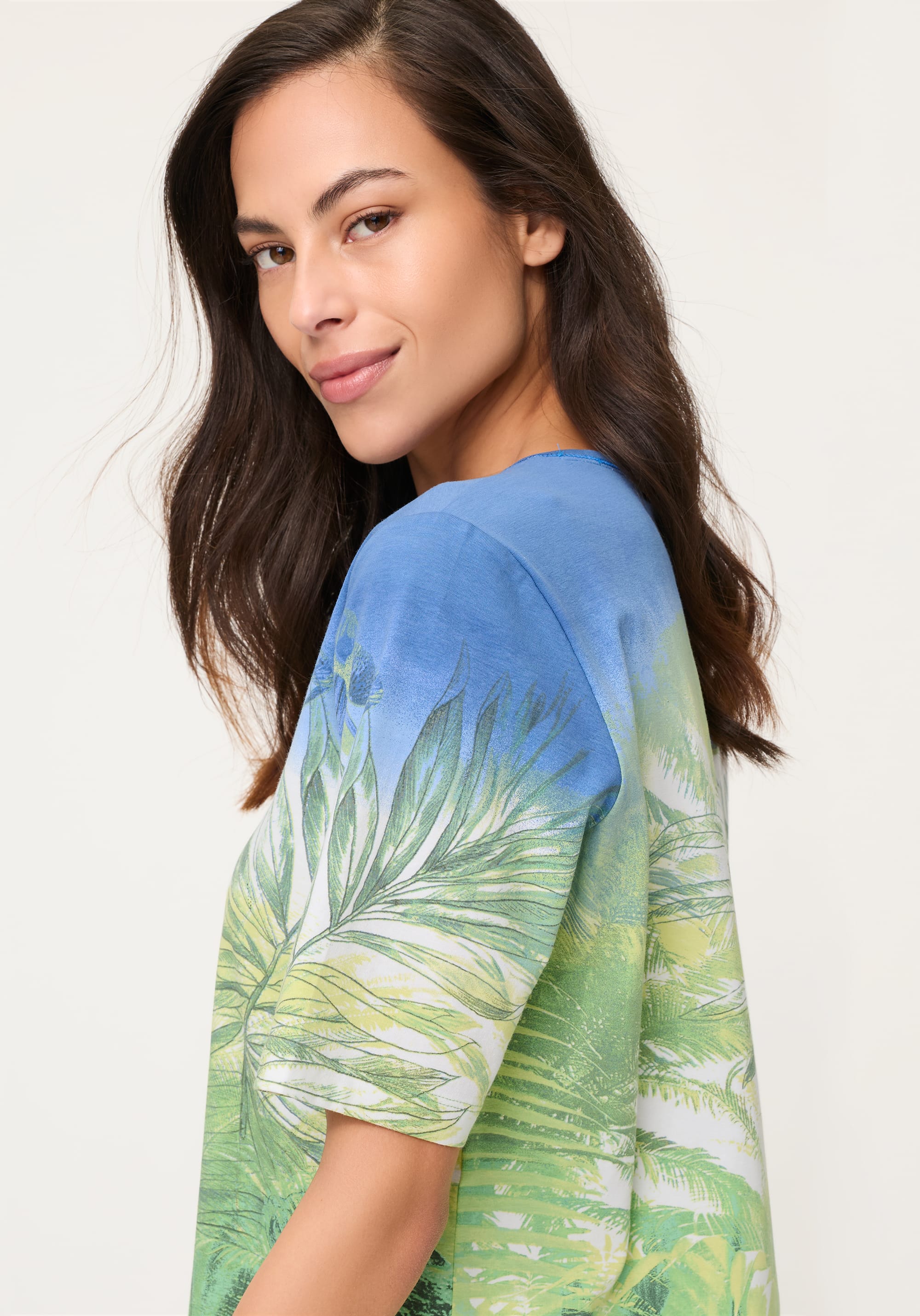 • L’imprimé botanique luxuriant crée une allure expressive et artistique, rehaussée de discrets accents métallisés pour une touche raffinée.