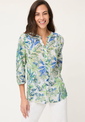 A feminine woven blouse that blends expressive style with effortless everyday comfort.