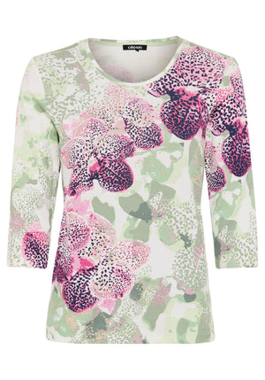 A feminine everyday essential, this T-shirt stands out with an artistic panel print featuring an almost abstract bouquet, subtly embellished with sparkling rhinestones for a polished touch.