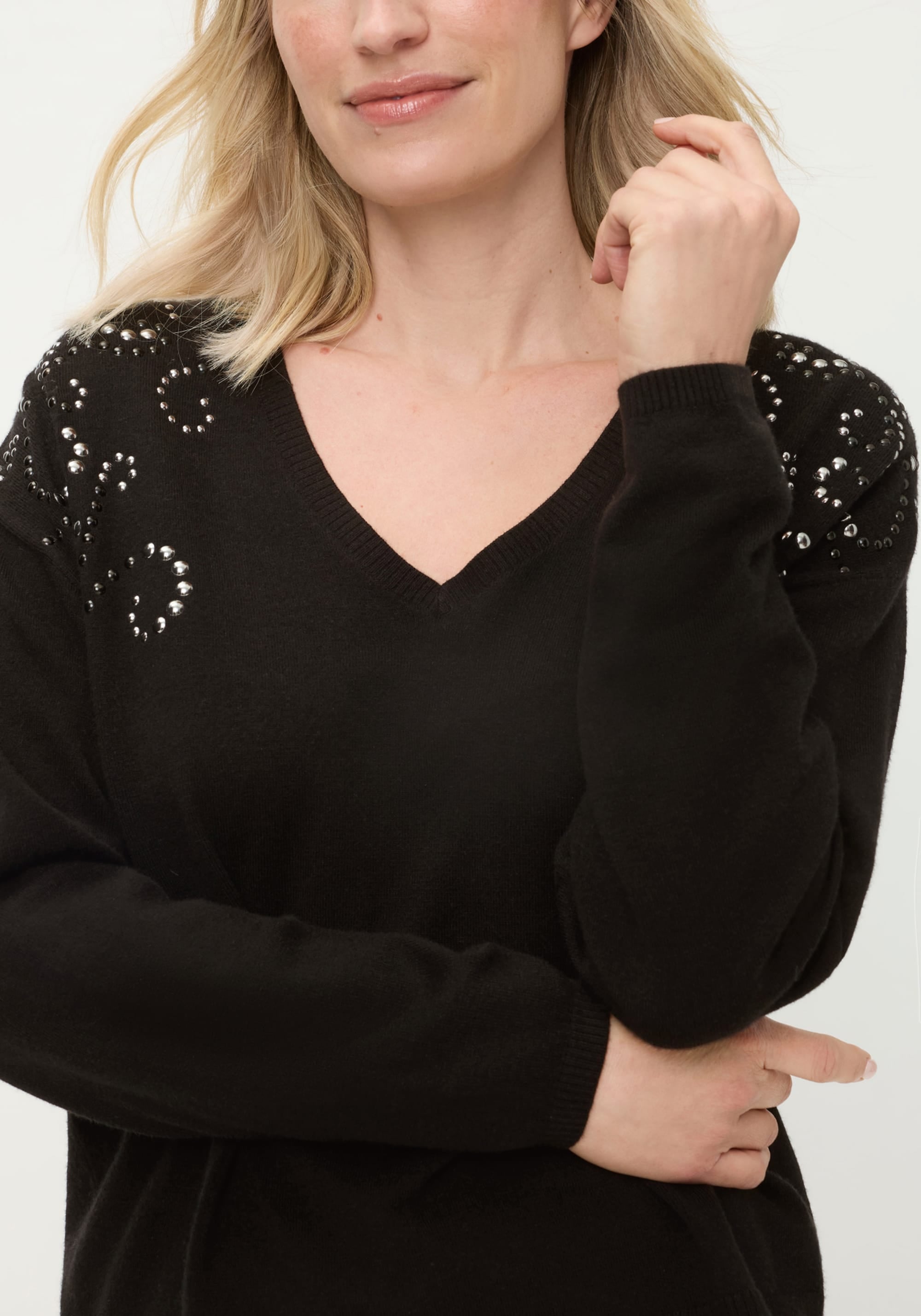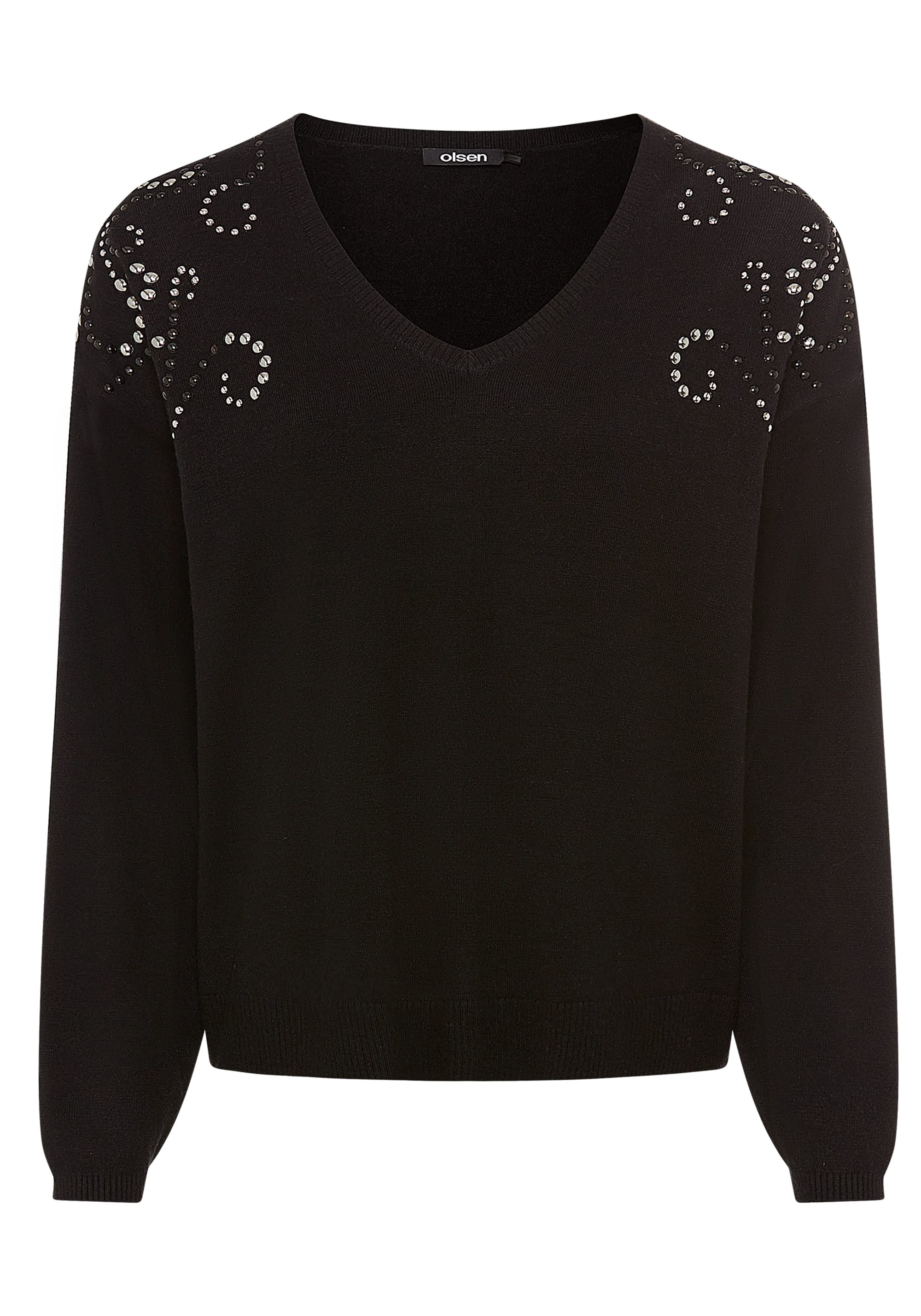 A soft fine-gauge pullover elevated with shimmering detail, this sweater blends ease and elegance.