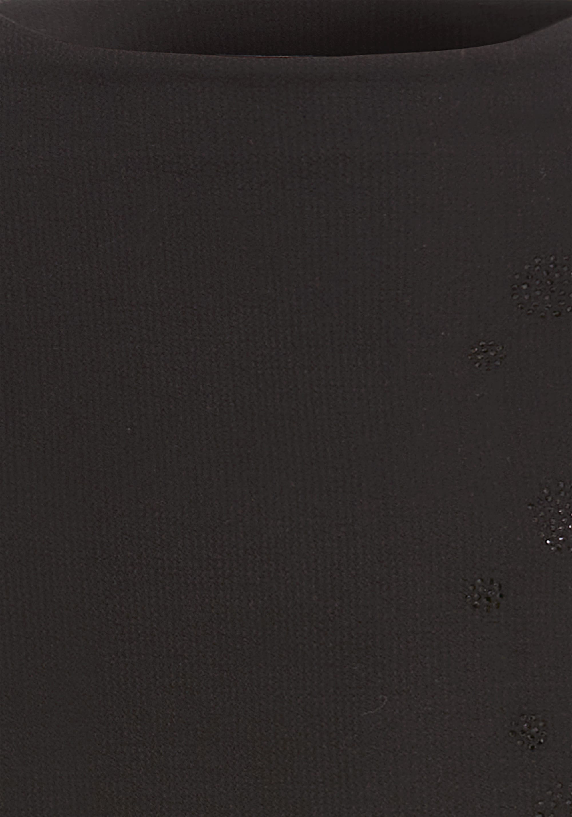 • Le design épuré est rehaussé par des appliqués de strass noirs ton sur ton qui descendent le long du côté gauche.