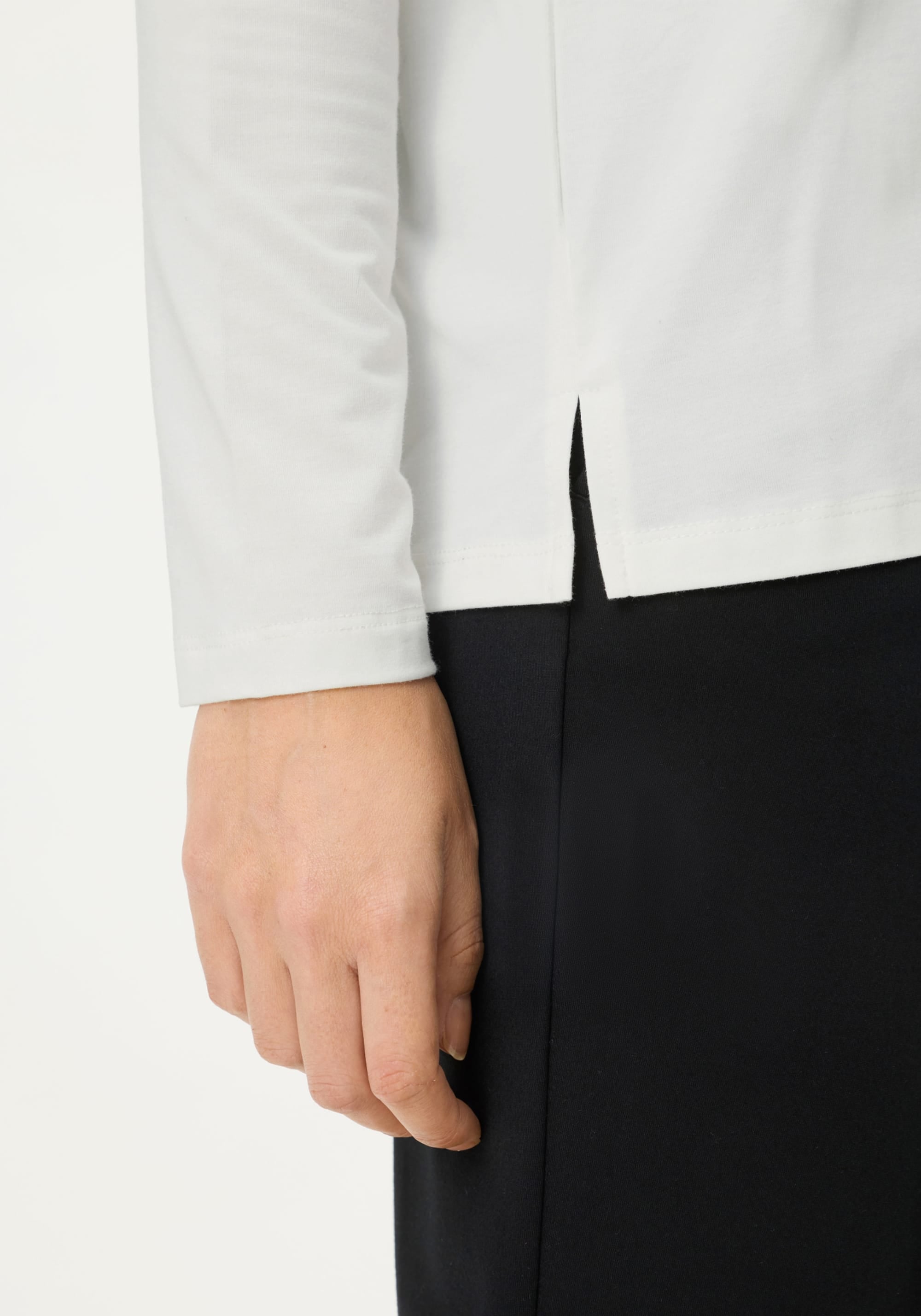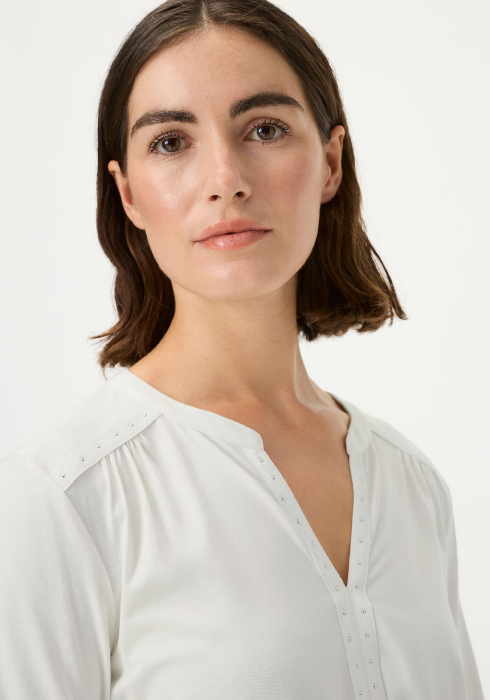A simple cotton-modal blend t-shirt is elevated with refined yet eye-catching details.